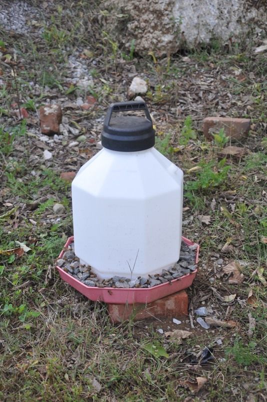 I forgot to mention that I also have one of those stone fountains.... the kind where you dig a 5 gal bucket into the ground and then lay stones on top. The stones have a hole that a tube fits though and you use an underwater pump to pump the water up and let it cascade down the rocks. Both the bees and the chickens love to drink from that!