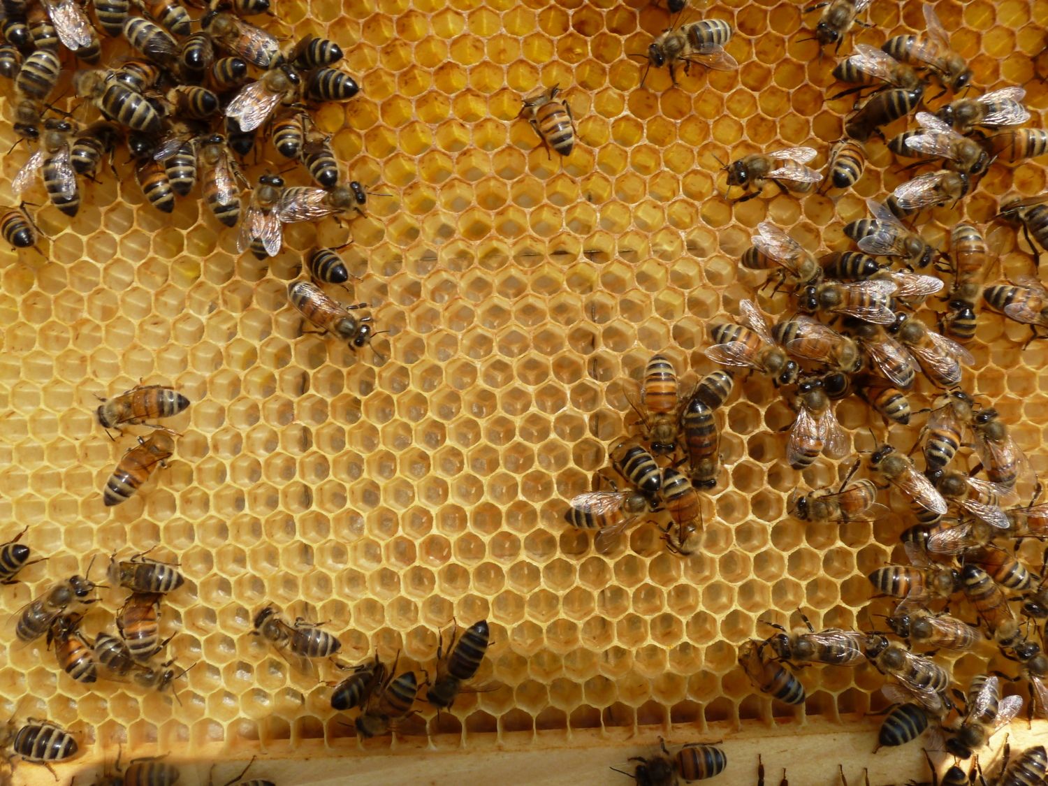 London Hens how are your hives doing? Your new queen should be laying by now, you should be seeing eggs and larvae and possibly some capped brood. When a queen goes on a mating flight she tries to mate with as many as 15 drones. The more drones she mates with the more extended her abdomen will become and the longer she will be a viable queen. What happened with your other hive? Did it swarm?