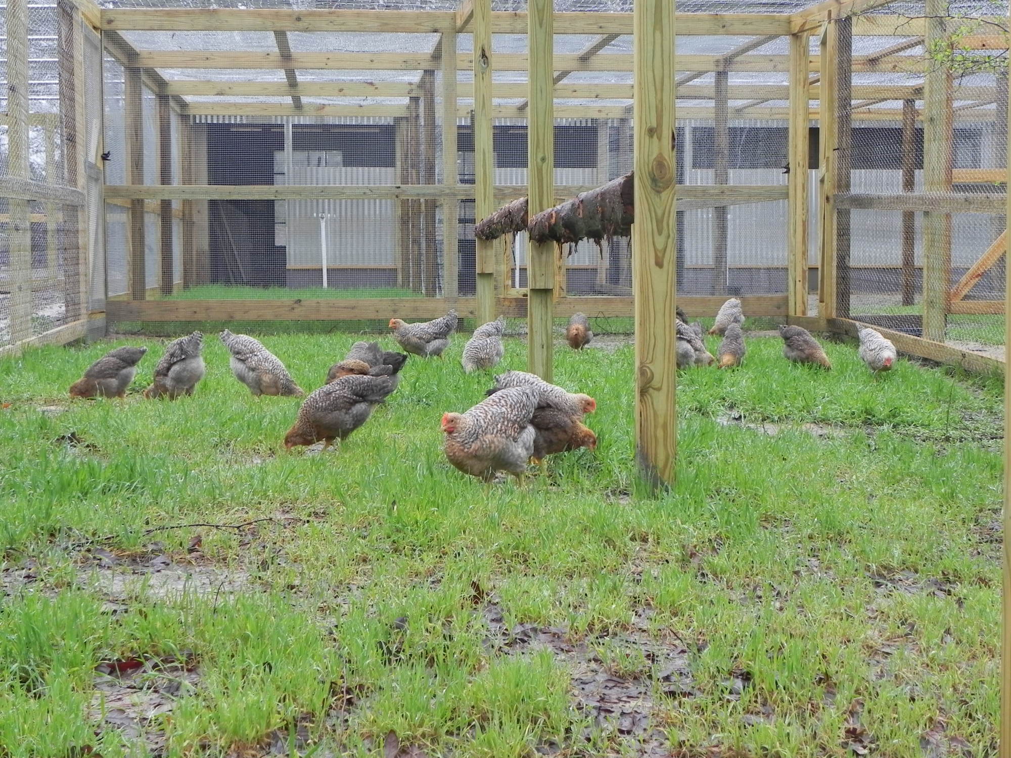 Wow! That's a lot of foraging fried chicken on the hoof! Are you raising for meat or eggs or both? DH and I are such softies towards chickens we switched to eating turkey not to feel like cannibals - haha! Nice roomy area/setup you have for your girls!