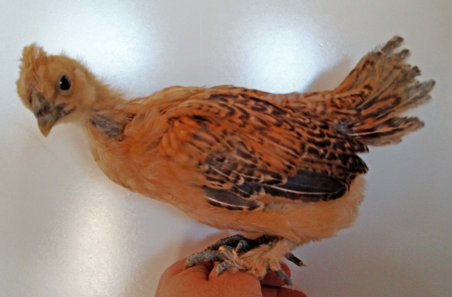Chick 3 is a little friendlier, and fairly assertive. I'm pretty sure this one's a cockerel.