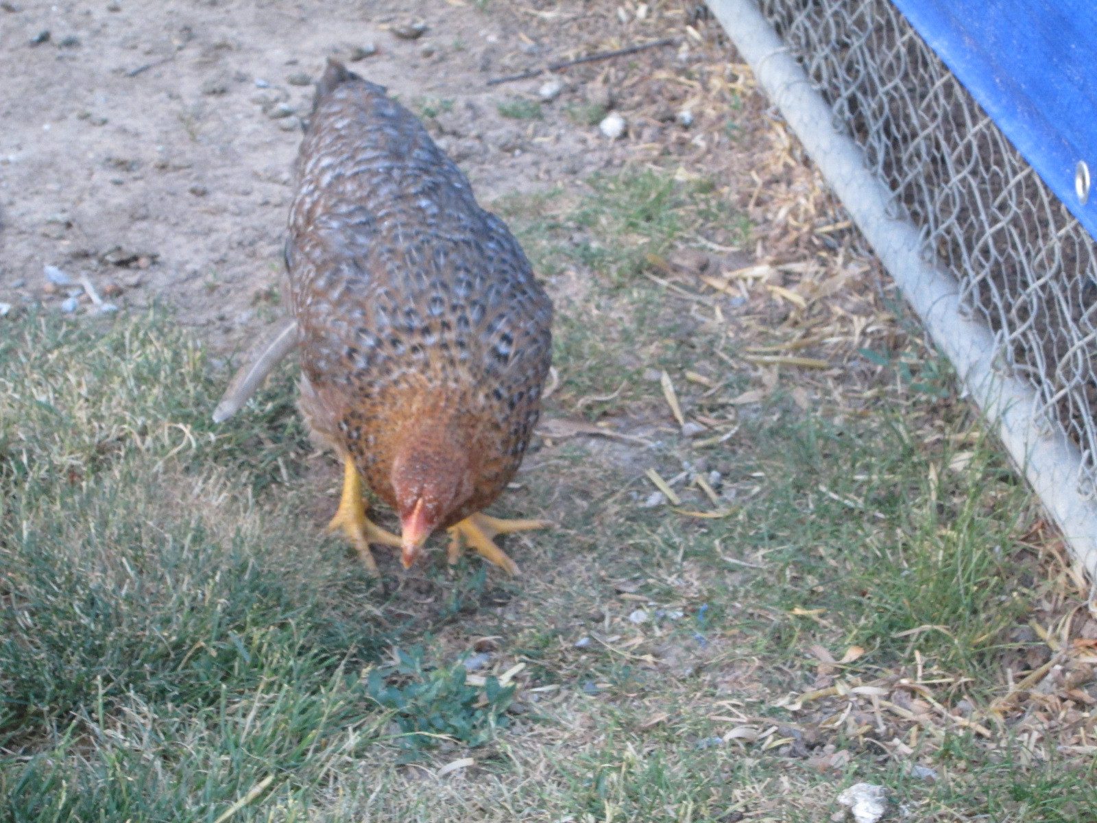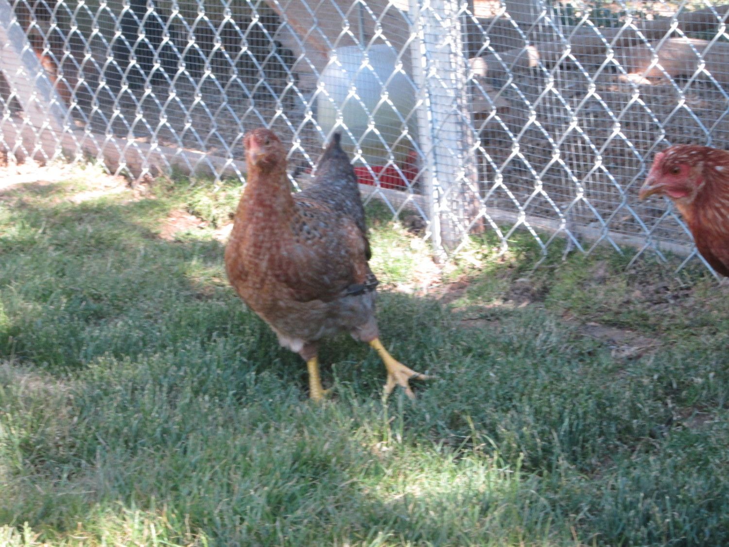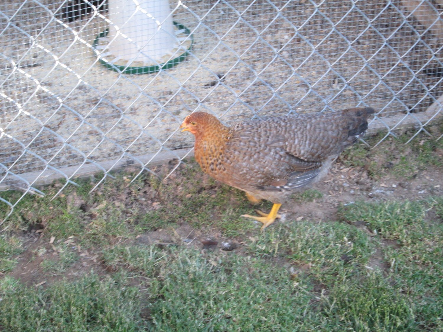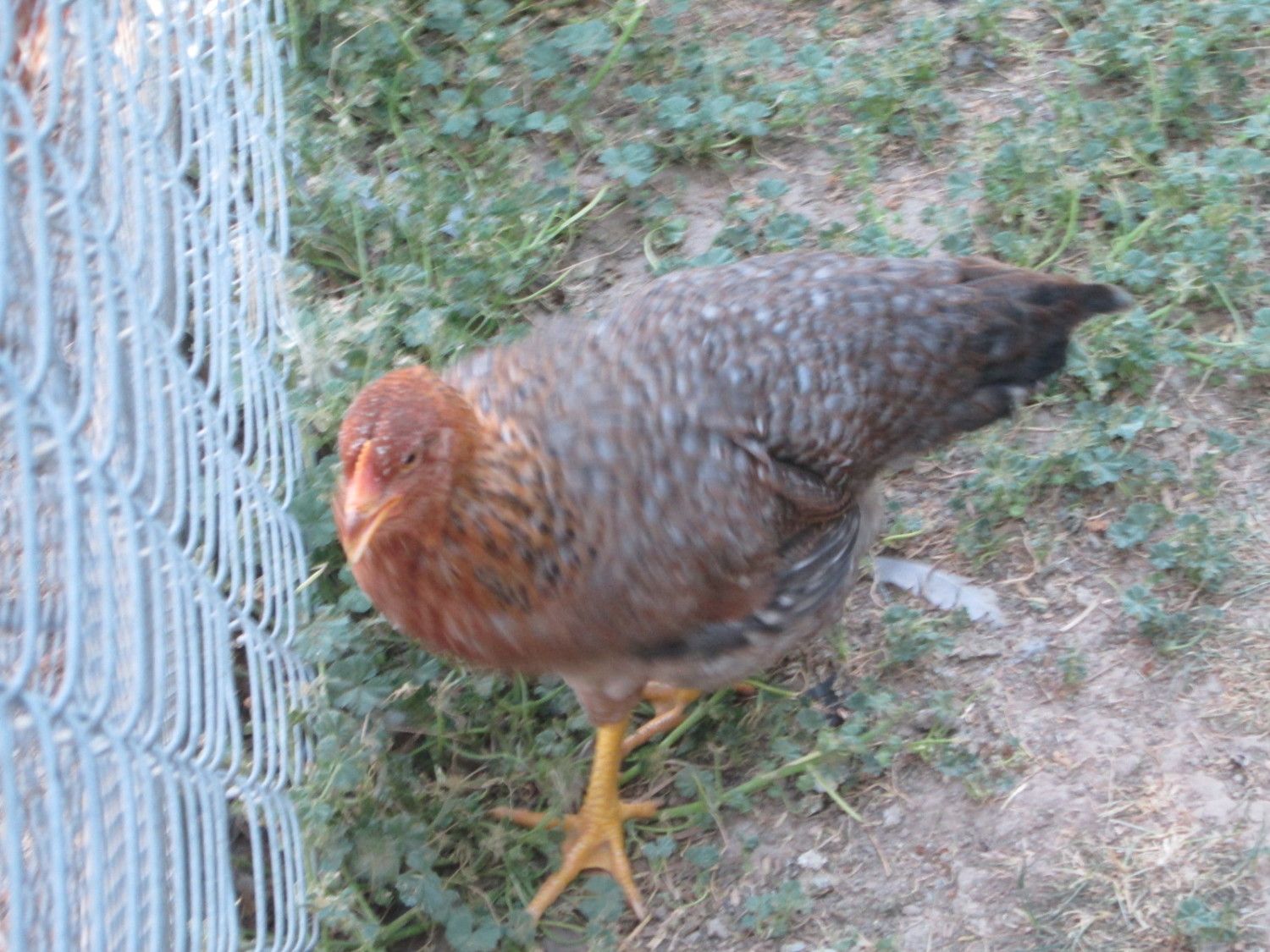 Here's my ...BIG Bie Pullet. With the big girls now. They are still trying to figure out if they like her or not. She is as big as these girls..some are pullets, some hens..love love the photo bomb one of my RSL's eyeball peeking up at us. lol..