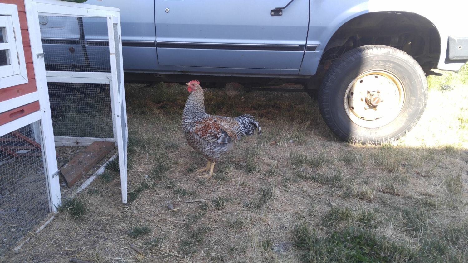 This morning I saw Kaiser doing his courtship dance for one of my Bielefelder hens! It was really cute. Usually, he just grabs a hen by the back of the neck. She ignored him, but it was pretty cool to watch.