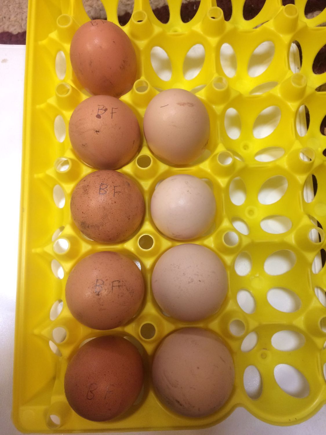 The darker eggs are from my original flock and the lighter eggs are from the 2013 import birds.