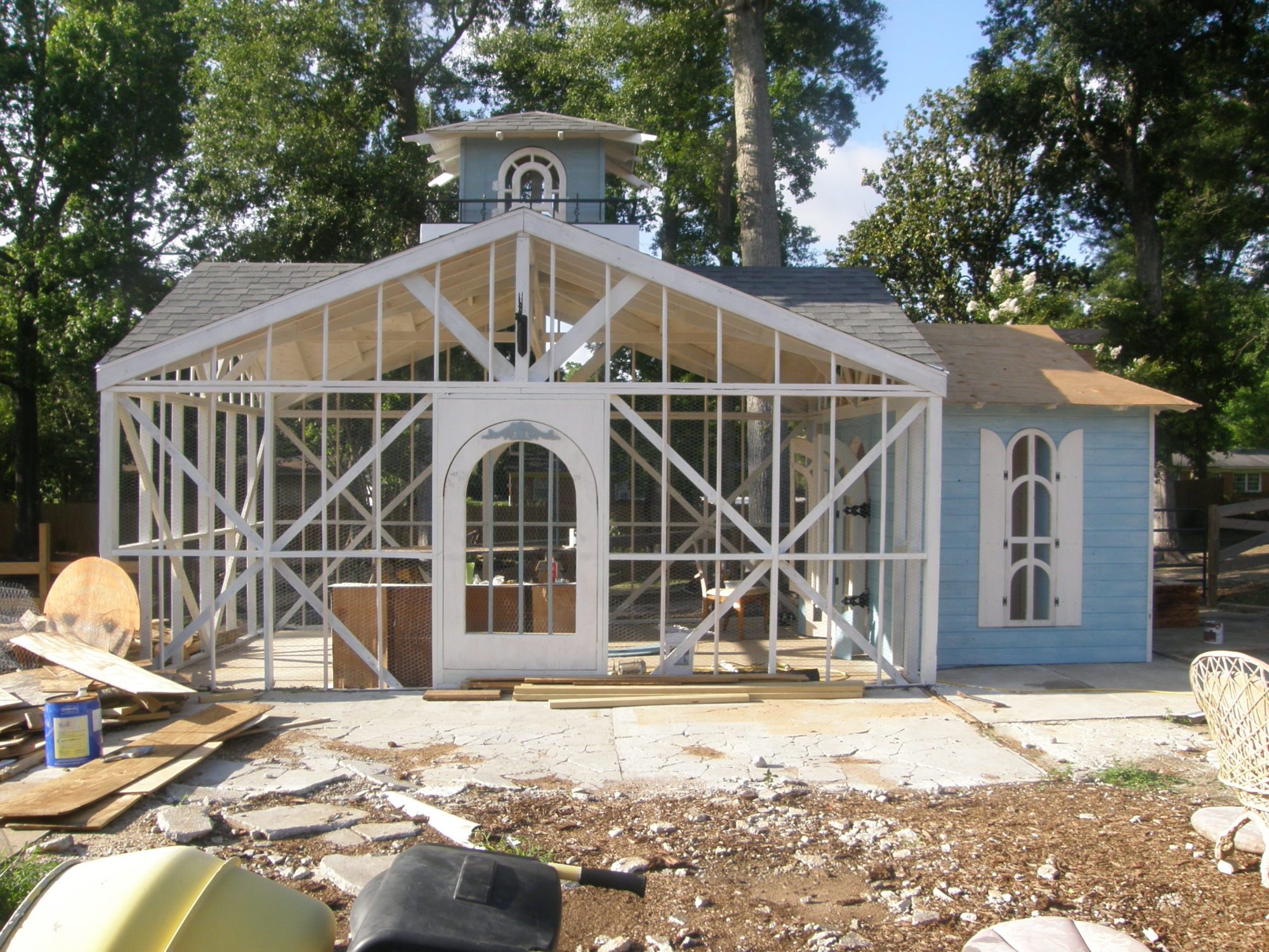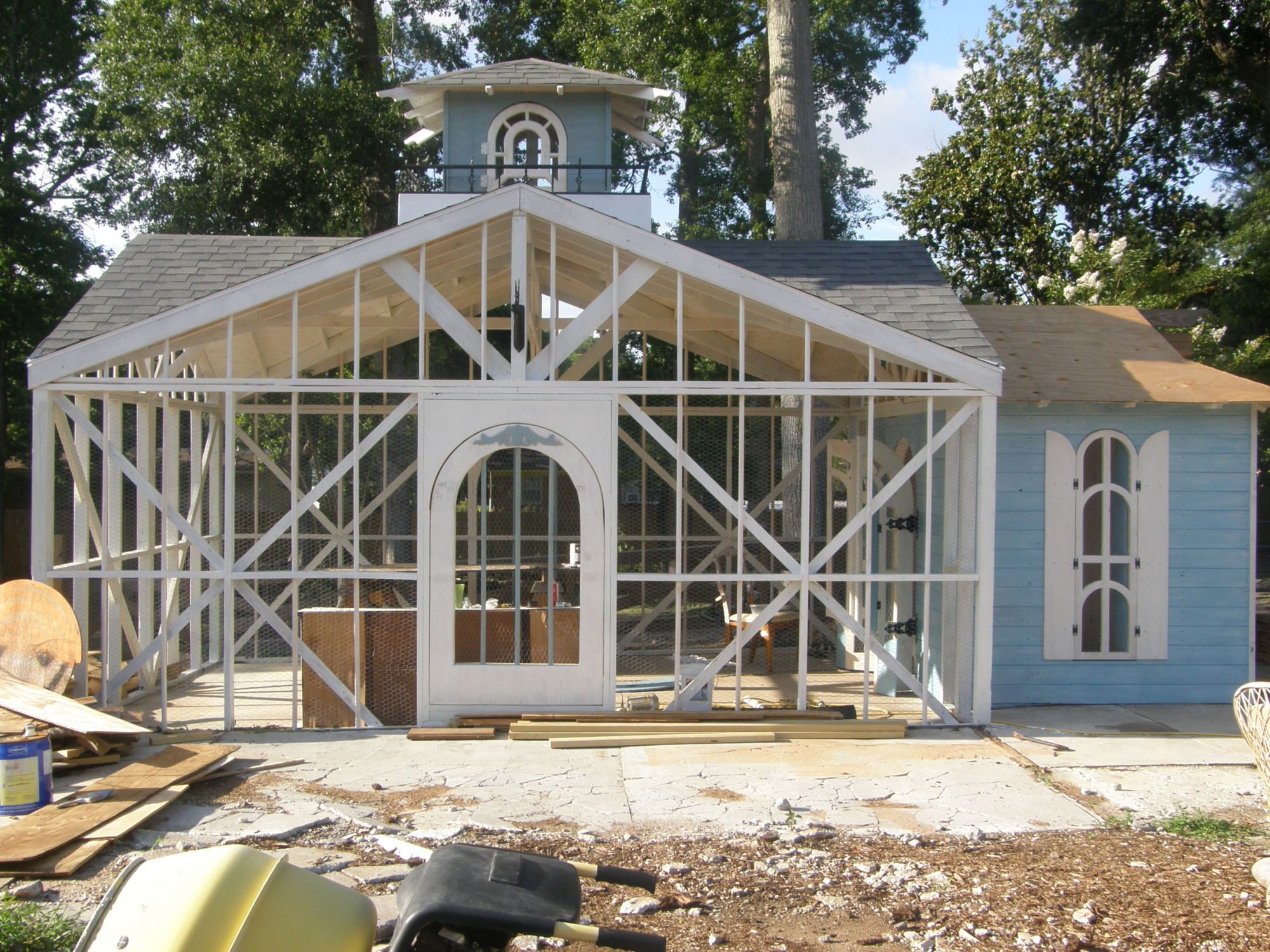 Hi my name is Jennifer and im new to the site, I was raised in northern Ohio, spent most of my life on a farm, I'm 38 and 2 months ago I was diagnosed with breast cancer. I moved to Southern Alabama almost 4 yrs ago, my older brother Tim moved in with me over 2 yrs ago. When I came home with the news of cancer my brother was devastated.....( I will survive this!!!) anyway he being a custom home builder asked me what I wanted more than anything, my reply was a chicken coop LOL Ive been asking and asking for years, so he being the absolute building material hoarder that he is started building the coop of my dreams 2 weeks ago. were not finished yet but I can give you the dimensions of the coop 16x20 and the attached hen house is 8x11 there will also be another attached hen house on the other side of the coop once it is all moved (I just bought the half acre next door to me) so we have plans on moving the entire coop to that site) with a front enclosed garden space of 30 feet long 20 feet wide all with raised beds and pathways. so far between the salvaged material and what we had to purchase we have almost 1000 dollars into it. I will continue to post as we get further to the finished product, the middle enclosure Aviary with cupola is 15 feet high so it will give my girls who like to roost high plenty of spac