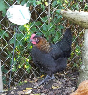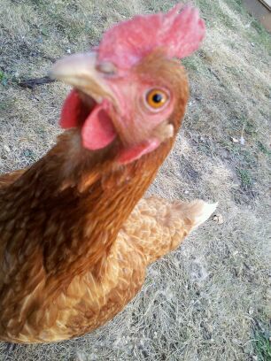 Wow! She almost looks like a rooster with a comb like that! But her tail clearly reveals she's a hen. I call them manly hens.