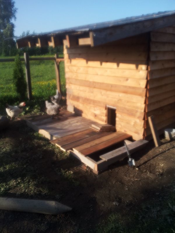 The man more then doubled the coop size but he hasn't put in the roof or floor. Not even a roost. Mom has to take out the old wall and is afraid of the wasps that have been trying to nest in it.