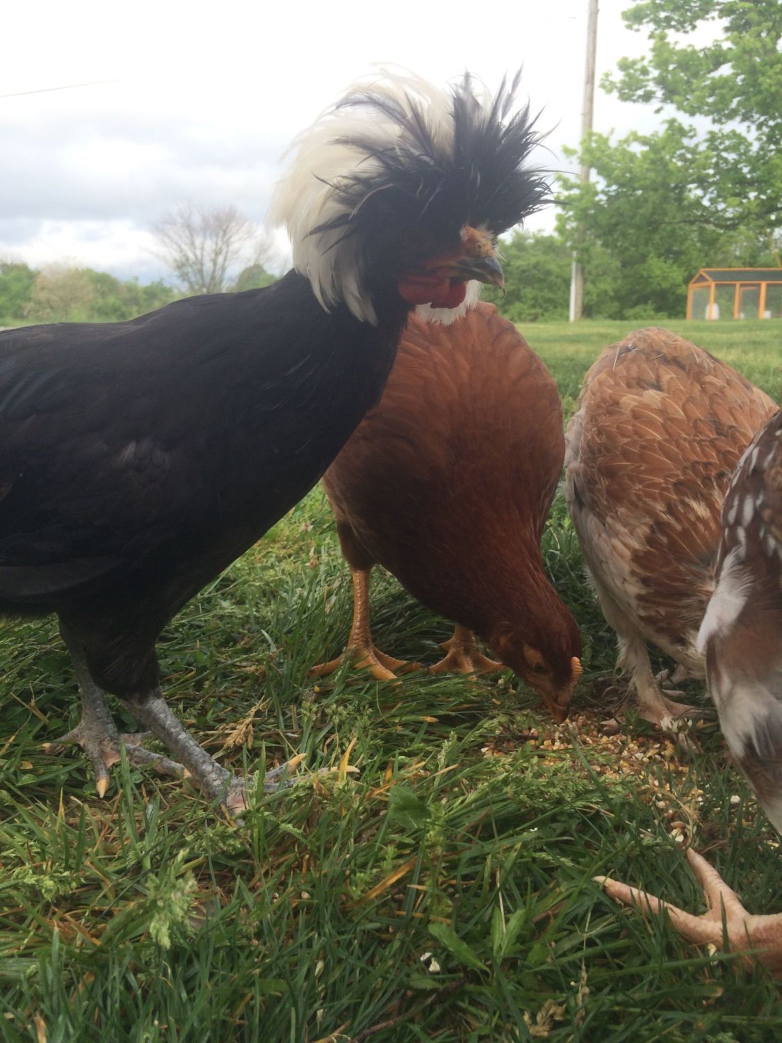 In our shipment of chicks, we ended up with some extras. The brown/white ones, the black and white with the lighter head, (the black and white spotted are my barred rocks) and the one with crazy fro.
