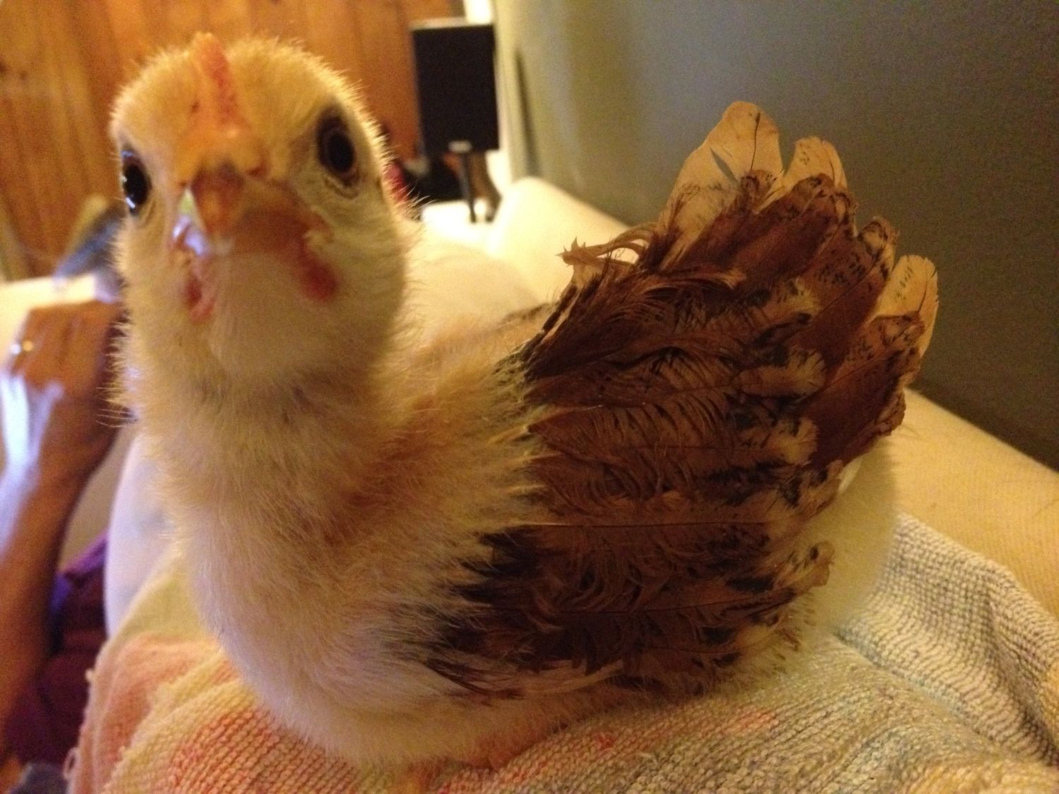 This was a stray little chick that was given to me. I was guessing 3 weeks old and wonder if it is a female red star? Because it's the only chick I have right now it's becoming so imprinted and affectionate! I sure hope it's a girl