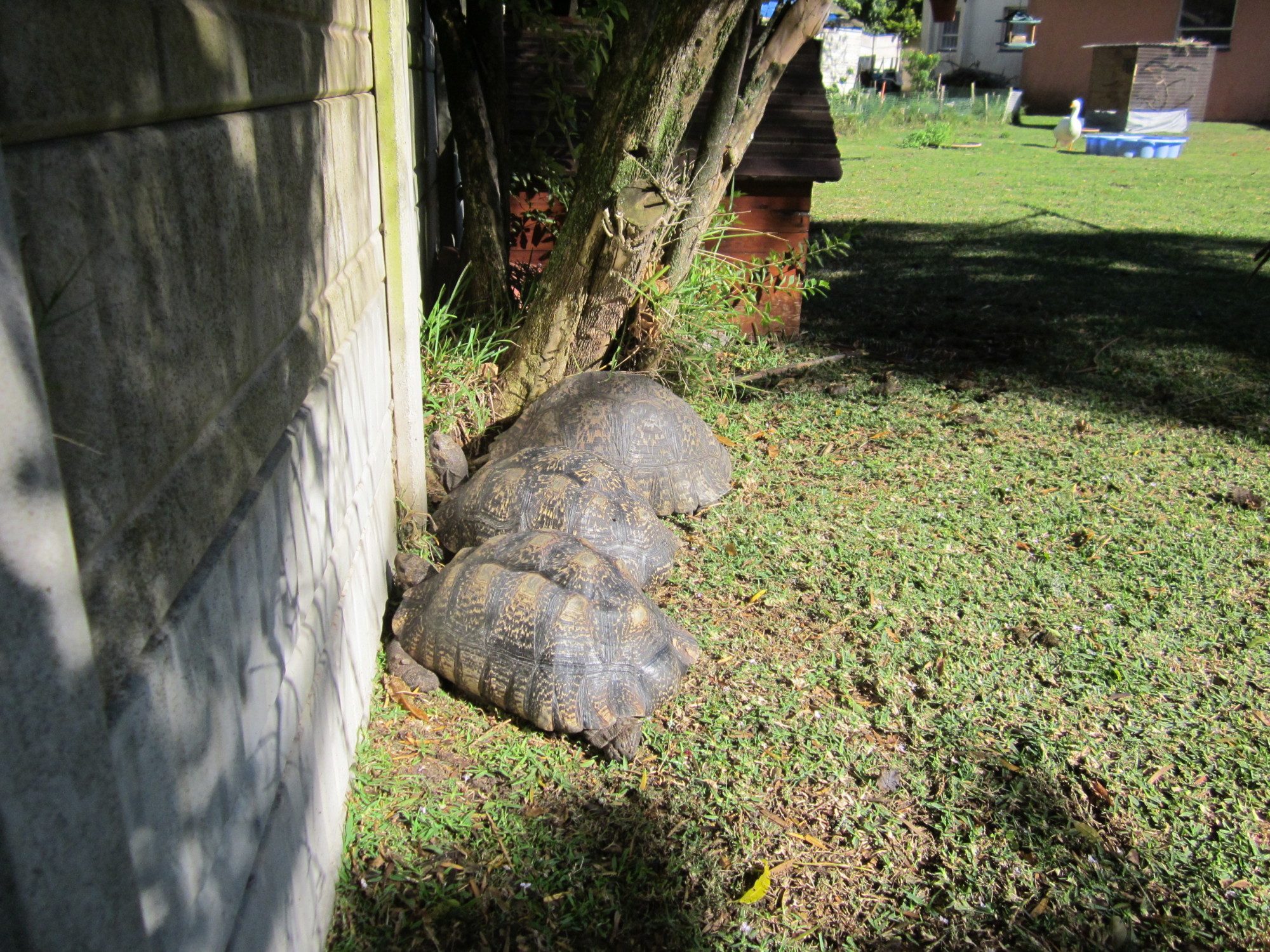 They don't dig like gopher tortoises, but they make a scrape, like a furrow, to sleep in. It's usually deeper at the face end so the head is just below the surface of the ground. Alternatively they dig in against a hard surface. They probably feel more secure when their faces are protected while they sleep. The challenge with these guys is that when they can see through a fence, they do their utmost to get to the other side. My biggest girl is 24kg and that's a lot of pushing power!