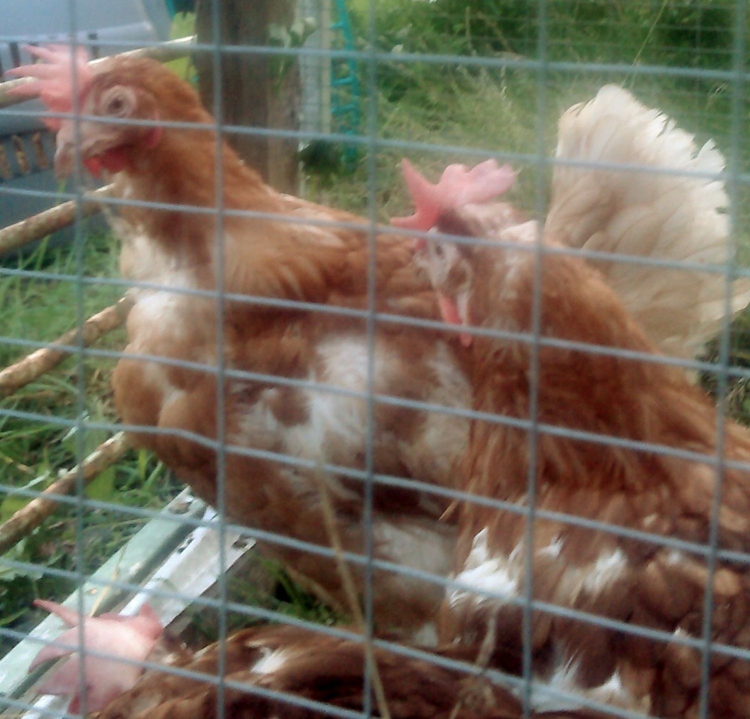 These girls are larger than previous ex-batteries we've had and seem much livelier. We could only take an extra 2 girls as we'd only brought enough carriers for six. They're in a temporary run at present and we're off to buy an extension later today.