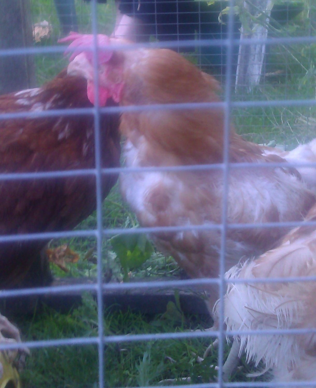 This morning,they had no idea what they were supposed to do and we had to lift them out of their house and into the run-flat area,no step or ramp. Poor little(ish) souls,with their pale faces and combs, making their eyes seem dominant,they seem like some strange,alien race! But that'll soon change. Oh,and we had 2 eggs this morning!