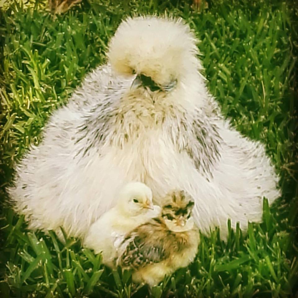 Generally silkies make the very best broodies. Sometimes silkie roos even help out to guard the chicks, and keep eggs warm while mama is out taking care of business.