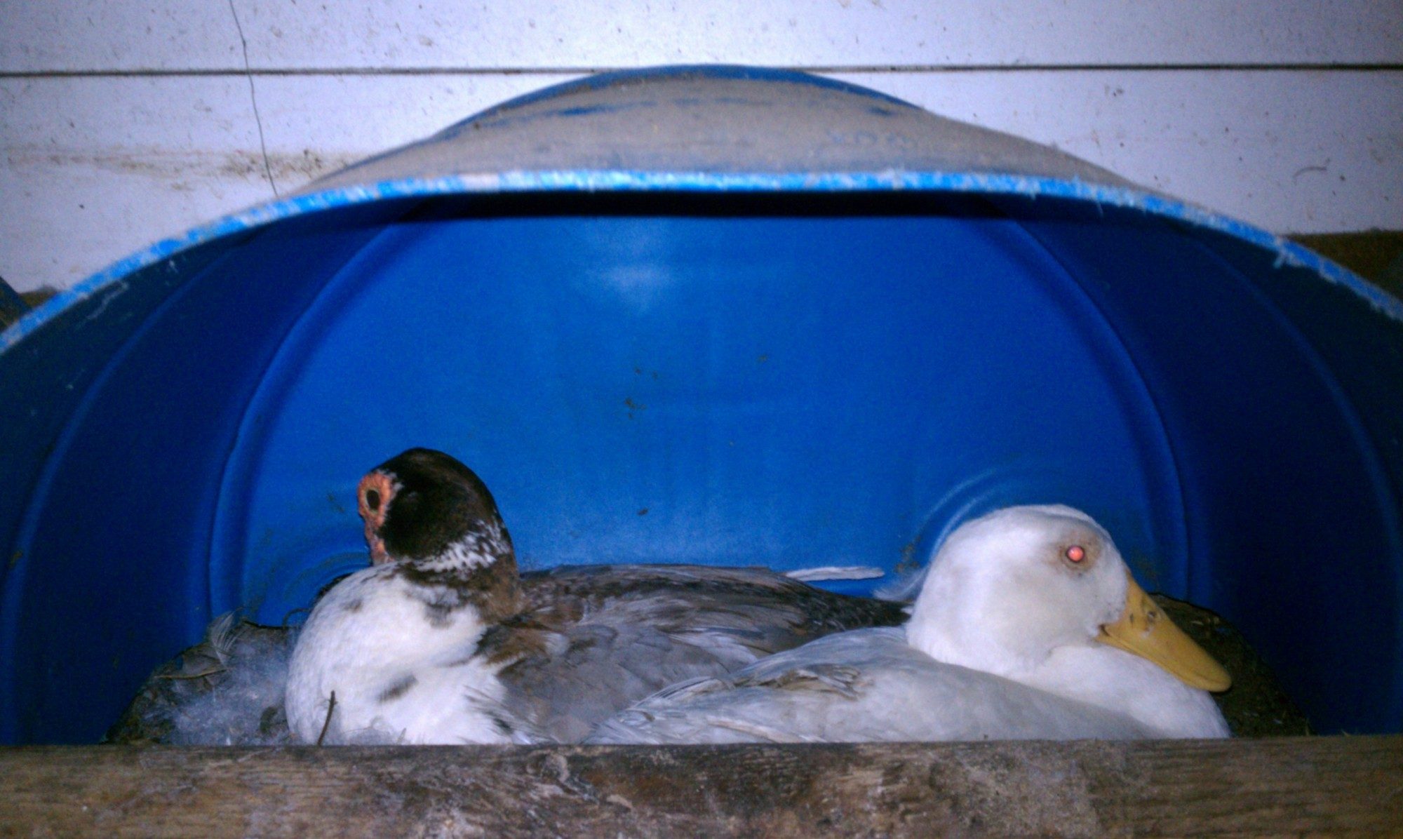 I currently have a muscovie duck and a pekin sharing a nest. They are fine with the arrangement and no squabbling. Some of the eggs are pekin and some are muscovie obviously. I have no male pekin their mates are scovie.....so when will they hatch? More so if the two breeds hatch at different times what happens then? Anyone know?