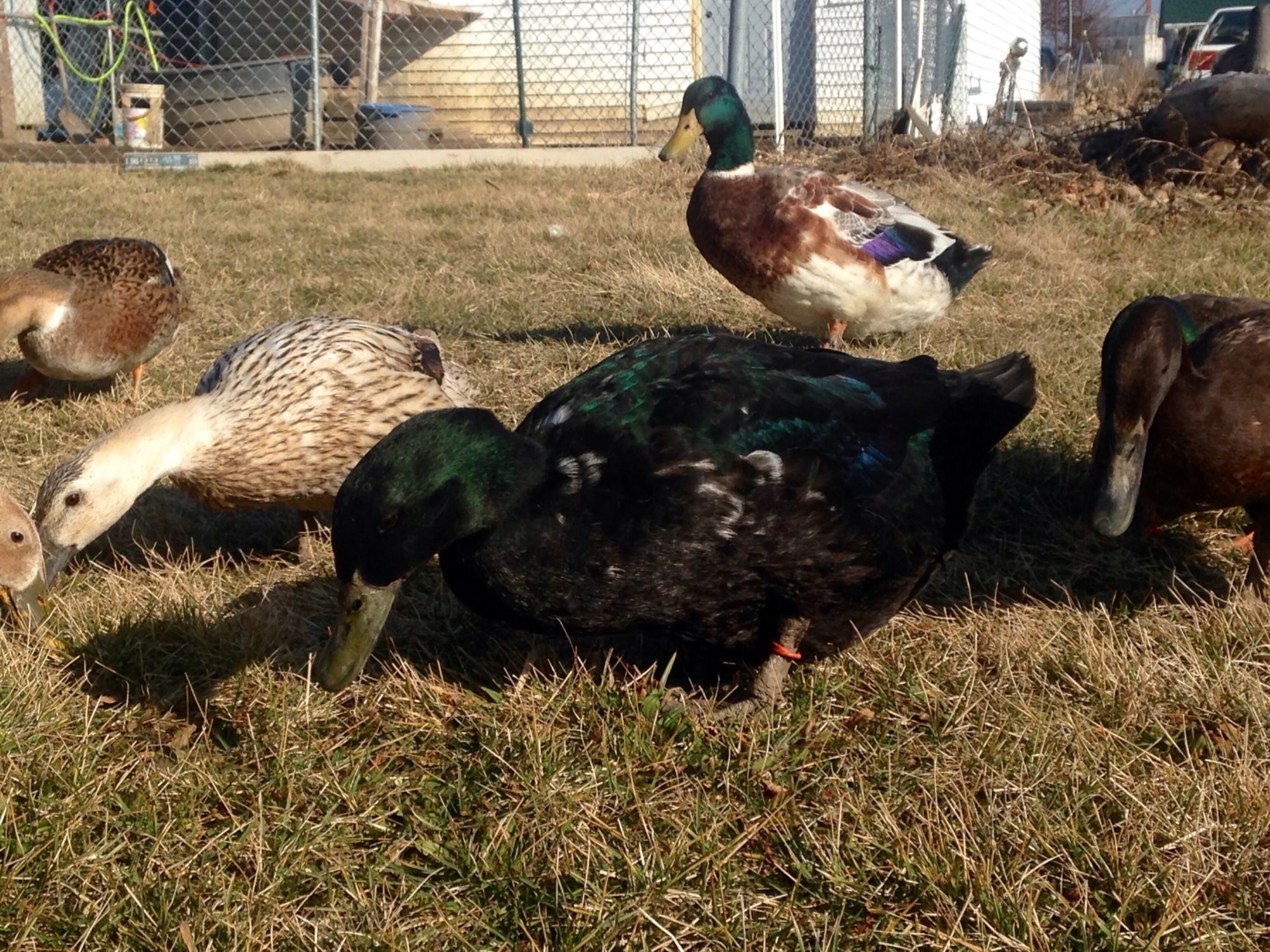 I love these pictures of your ever so cute duck birds. They are gorgeous, too.Noir really is the coolest looking duck ever! I hope my chocolate runner looks like that somedaycan I ask what breeds yours all are? And can I add to your photoshoot? I spent some time outside with my flock today letting them forage while I slowly froze to my camera phone.![]()