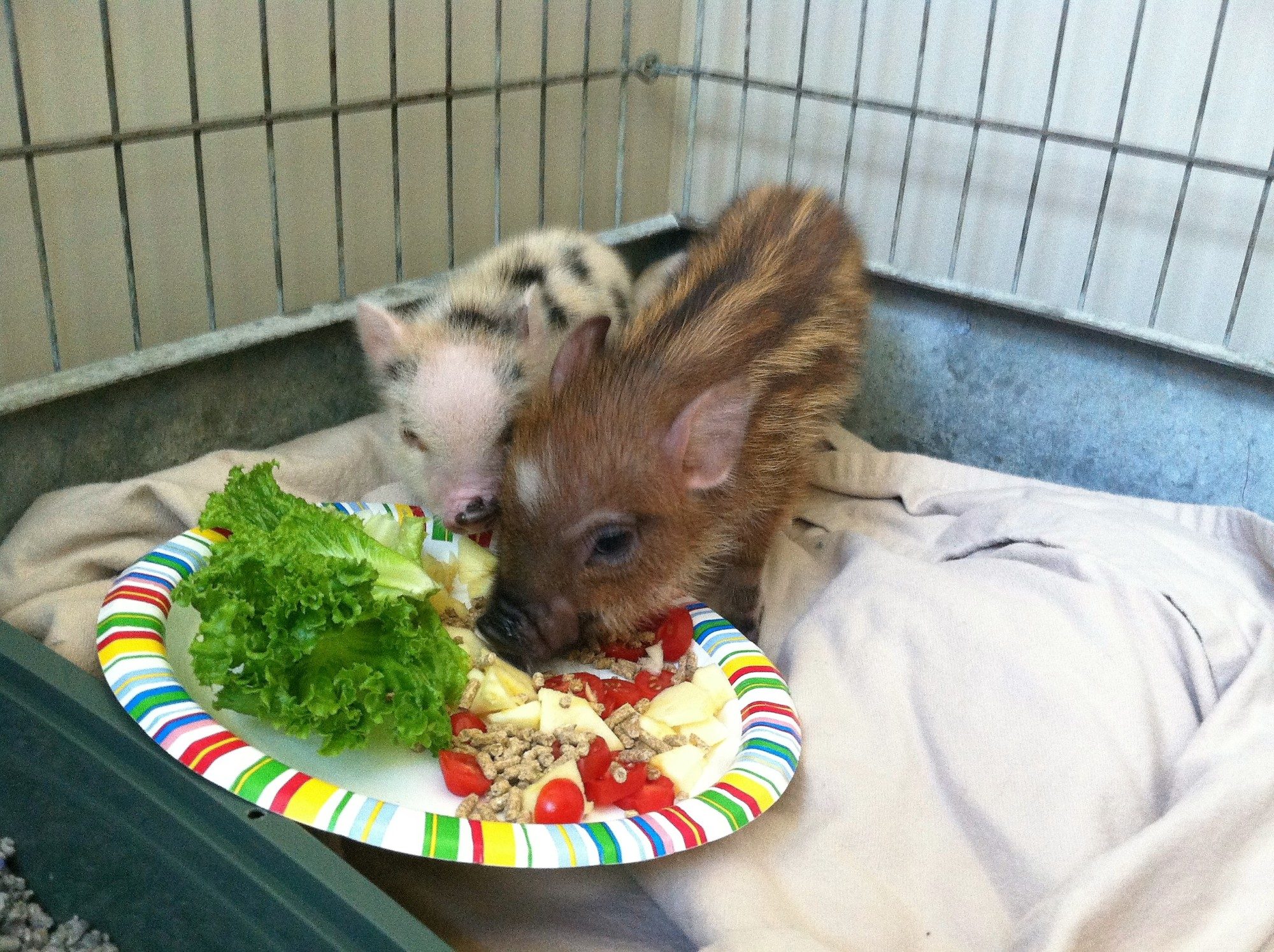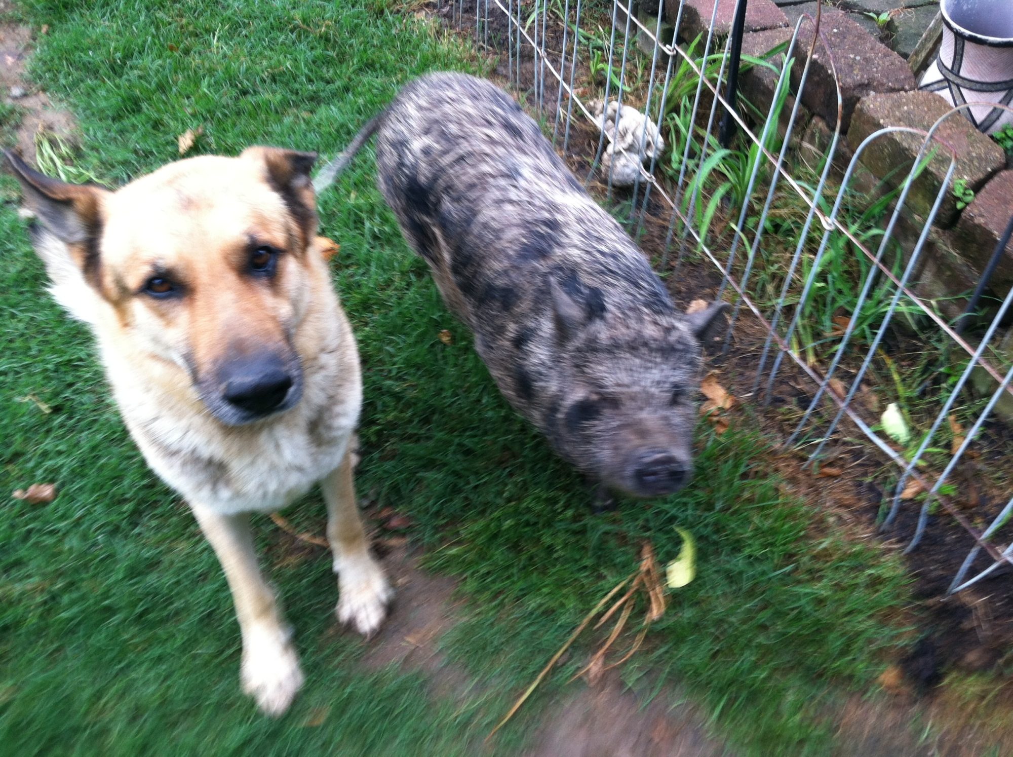 We added two more piglets, so now we have a purebred male Juliana pig and two 75% females.