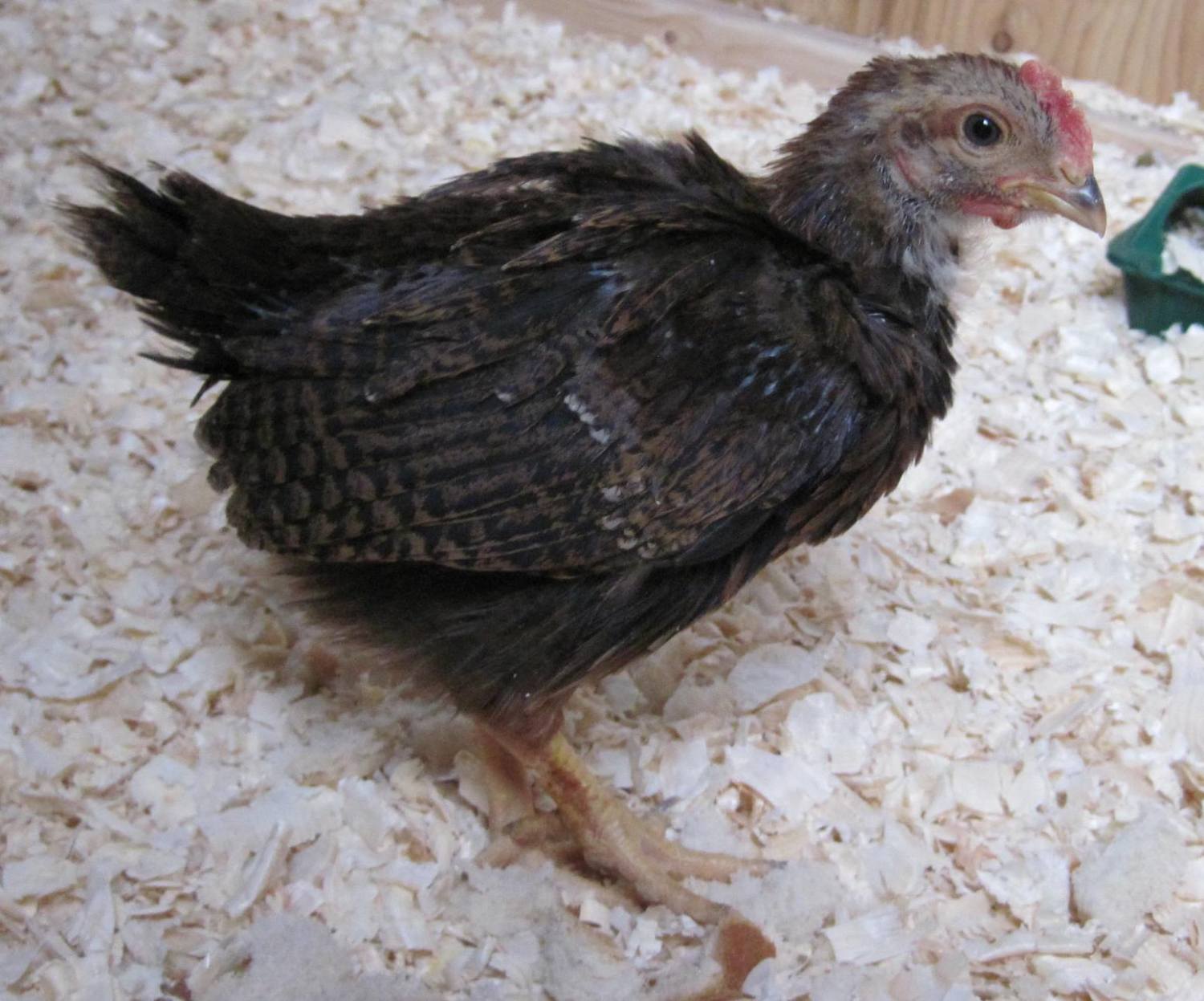 The first chicken was called Poopsie. Poopsie was the smallest chick the Overseer had ever seen, and was selected based upon a picture on the wall, displaying an adult Golden Sebright, a breed entirely new and exotic to the Overseer. Poopsie immediately needed help with some personal grooming of his rear end, and thus, he was aptly named. At this time, everybody thought Poopsie was a was a female.