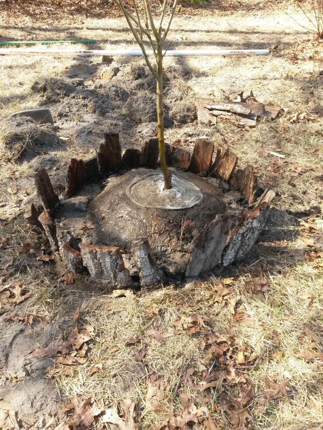 Dug the hole double the size of the root ball. Mixed in garden soil and applied mulch, away from the truck. Should I add a little more mulch? I "mounded" the soil around it carefully not to submerge to much of the trunk. Watered it. Is it old enough to be hit with a fertilizer spike? I'm in zone 6.