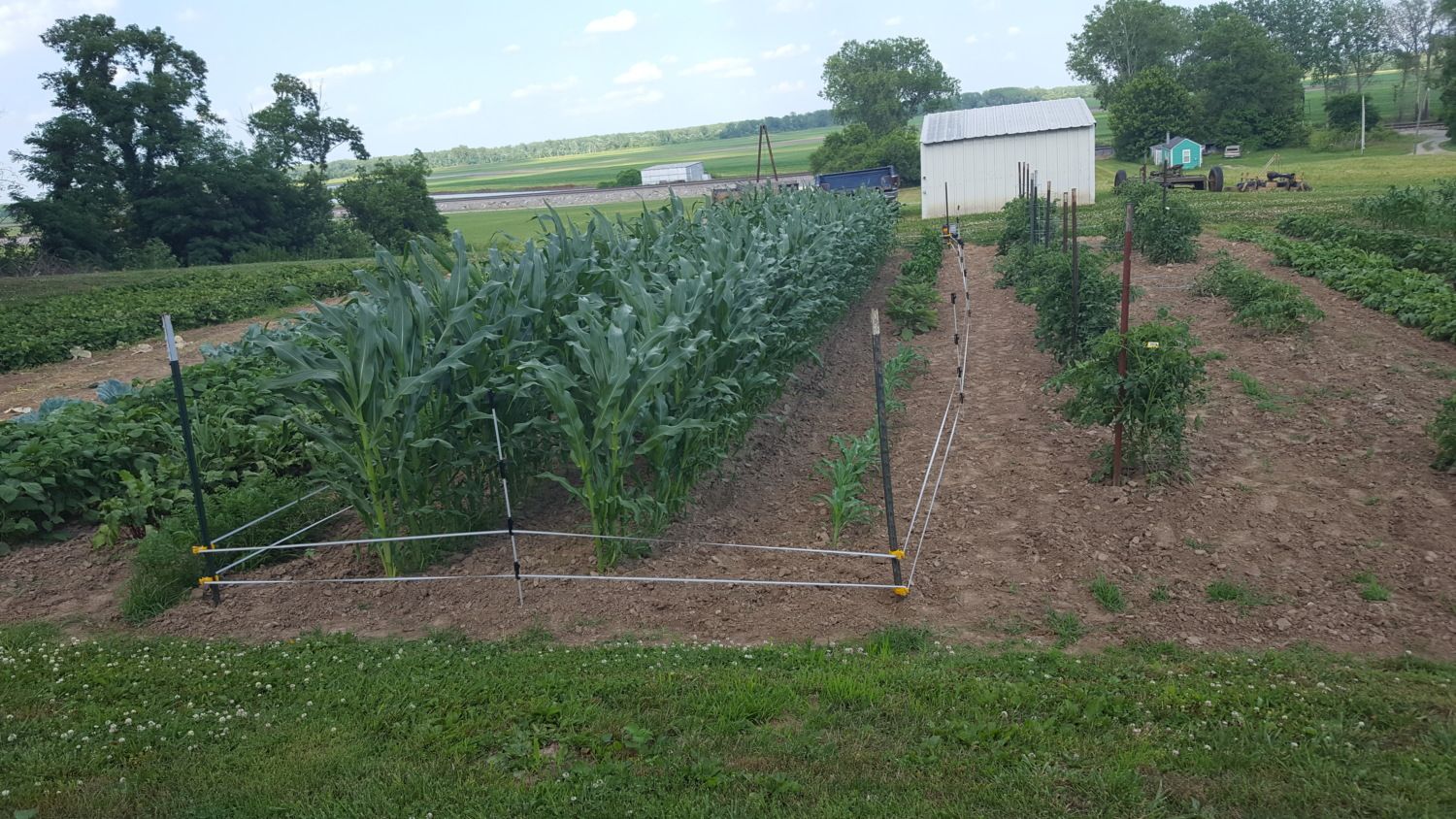 This is a similar fence I'm using on my garden, which also has sweet corn in it: