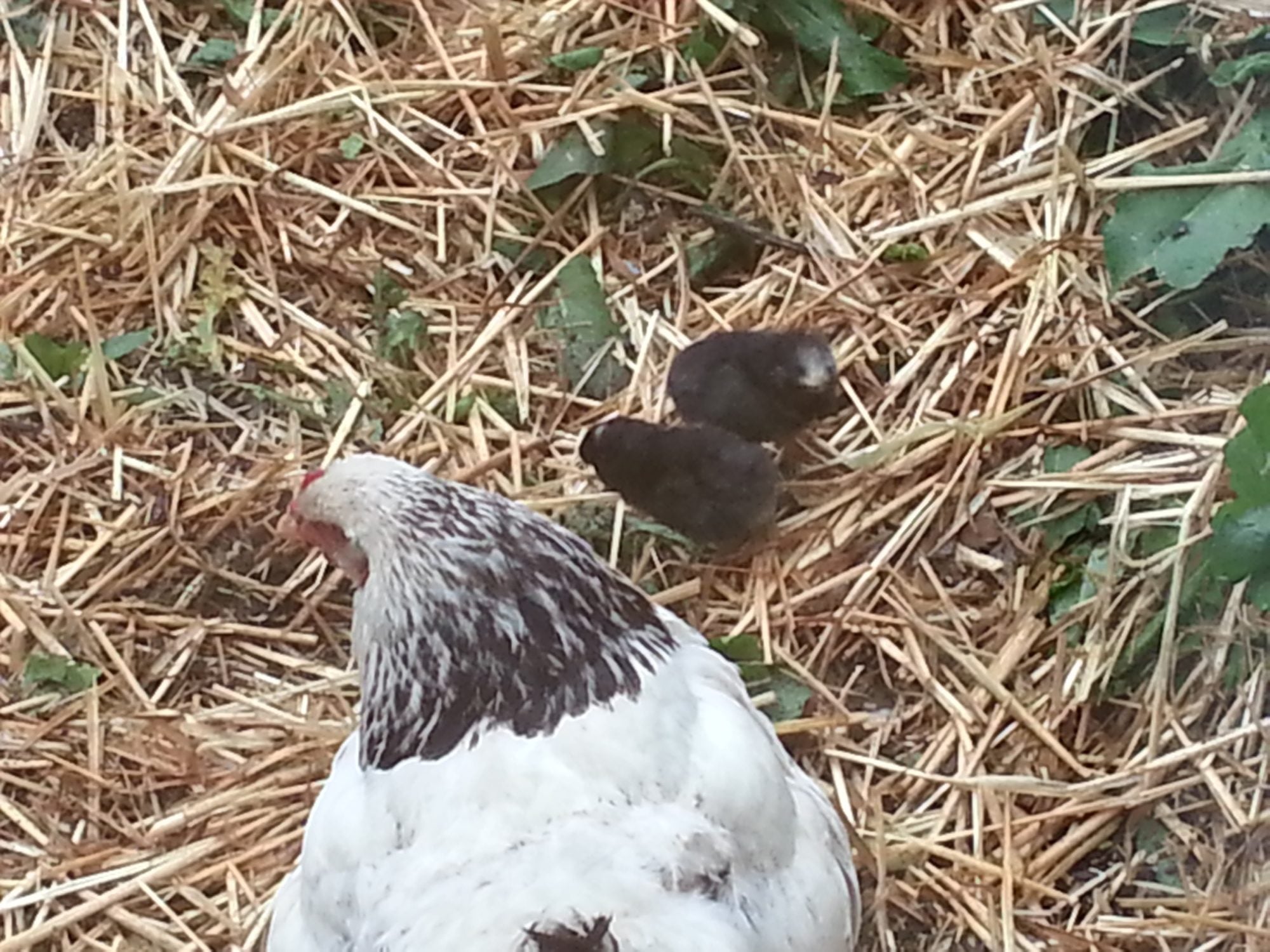 I should maybe add that typically my chickens refuse to coop or sit in a box. They prefer to roost on the privacy fence and a gate.... She won't do this and leave the chick will she? It's hot today but I haven't seen her and the chick cuddled up anywhere yet. She made her nest without my knowledge in a corner of the fence by a box that I had bedding in. She kicked all the bedding out (as always). She even removes it from near her eggs and nests. She prefers the ground to a nest, I'm not sure why.