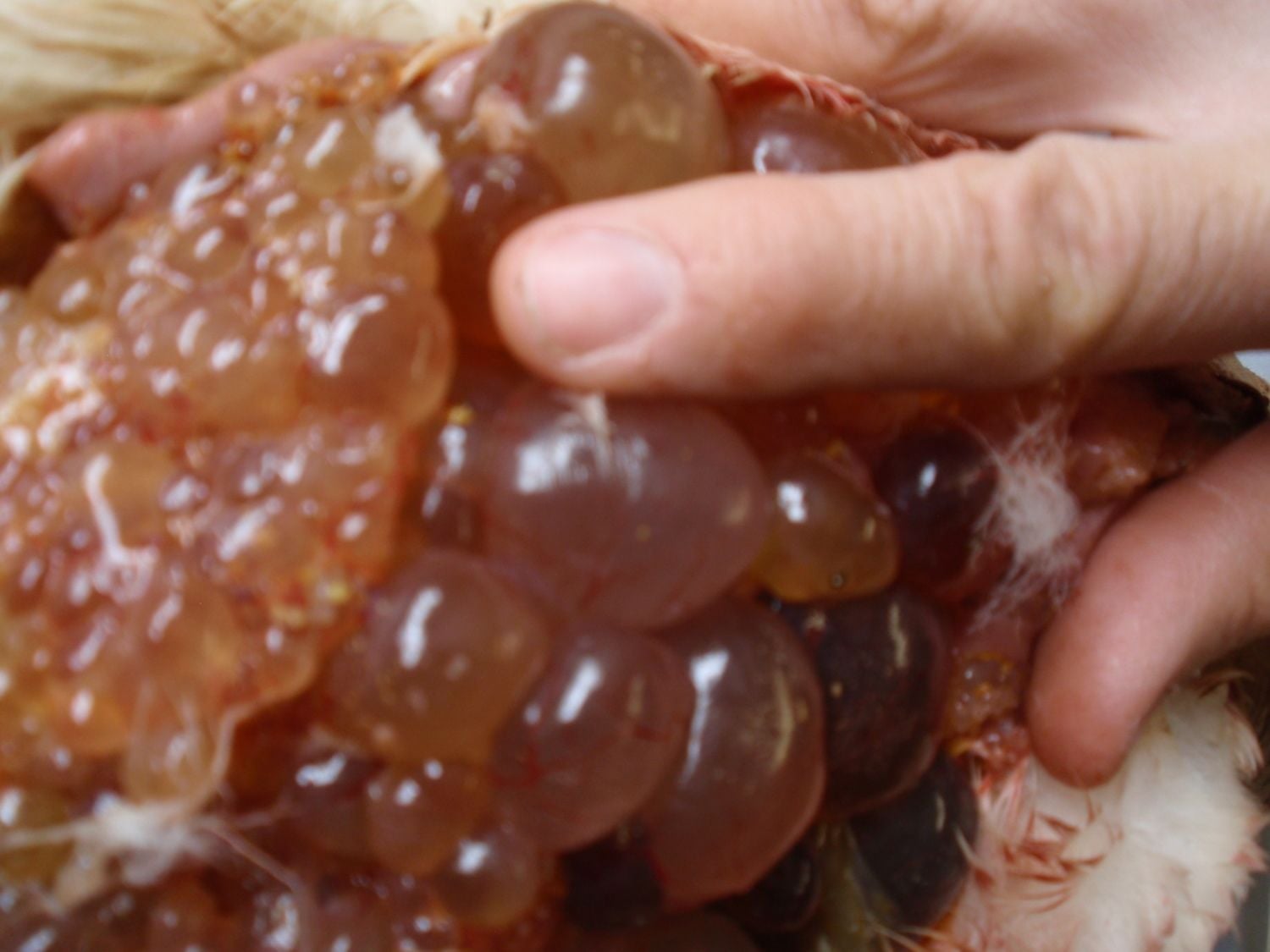 We had a Runner duck, about 5 years old who over the last couple of months started getting a bigger and bigger abdomen, to the point it was making it difficult for her to walk. On examining her, her abdomen was soft, just very large, and she did not seem too distressed by my examining her abdomen. She became weaker and weaker and would not leave her pen to range with the other ducks, so when she got to the point where she was moving very little I decided we had to put her down.