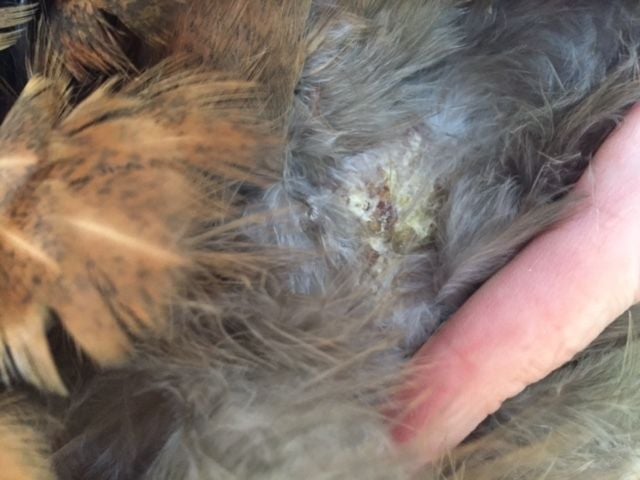 Our hen has been favoring one side a little more than the other. At first I though she might have had coccidiosis which as run through our flock more than once since we live in a wet area. But my wife noticed that she has what looks like a abscess of some kind near her should by her wing. I have added pictures. Does anyone have any idea what this could be? I treated her with Corid for a week and that did not help. Now she lets her wing droop and she doesn't stand unless approached.