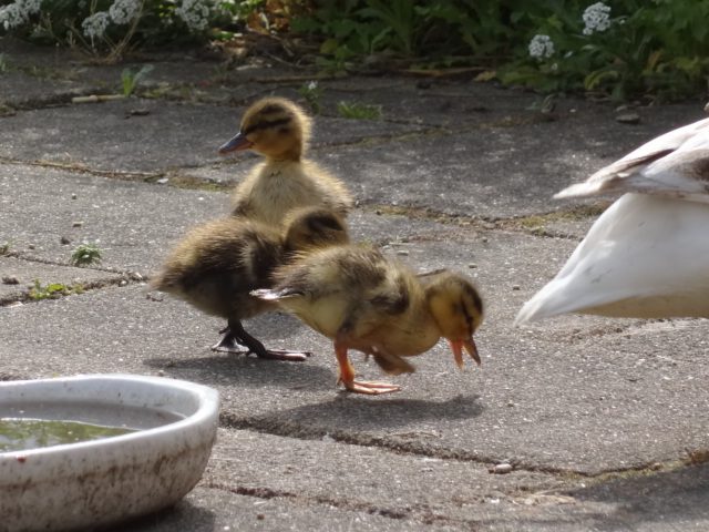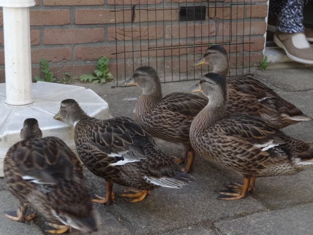 This pretty girl (she quacks like a girl) has a beautiful white patch on her chest and she's super sweet and hangs out with baby Donsje