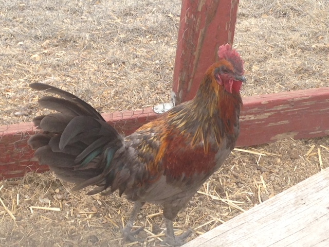 All of the chickens are very skittish and obviously not used to people at all. I am not sure how old the rooster is and I am doubtful that I would ever catch him to slaughter him, he’s quite fast.