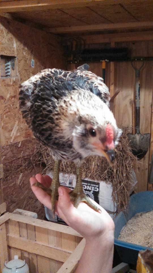 Right now, he and the other 2 pullets are in a brooding box, but that will be changing this weekend. They get to hang out with the older girls when we do free range time when I'm home, which is most every night. This weekend, I'll be fencing off part of the coop for the younger ones to live in for a couple weeks so they can see each other all day, before I let them be in the coop completely. Then they'll have access to the whole coop and the run when I'm not home to let them free range. I always hate integrating the new chickens into the coop because of the arguments that break out, but I take it as slow as I can to help with it.