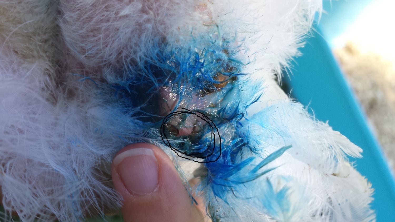 Okay So this is our chicken yesterday she had been pecked by the others and was bleeding so we seperated her and she slept inside in a cage over night. This morning she was cleaned up with normal saline and put antibotic cream on the area. There was nothing hanging out. I went to check on her before and there was like a thin string hanging out of her sore just less then 1cm long. I freaked out and got a cotton tip and tried to push it back in but didnt seem to work. So i came inside and got y phone and went back out and took these pictures. As you can see in the circle it has gone back in a bit more and there is just the slightest hanging out. I was just wondering what happened? and how can we prevent it from happening again? she looked like she was healing? would she have done this herself by pecking at it? Any information you could give me would be greatly appreciated.