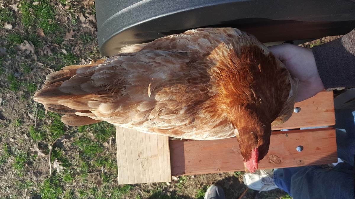 She's in a flock with other laying hens so I really do not know if she is laying or, if she is, which egg is hers. All the eggs in the boxes are light brown to brown, have not seen anything dark enough to think Marans yet.. She is approx. 9 months old.