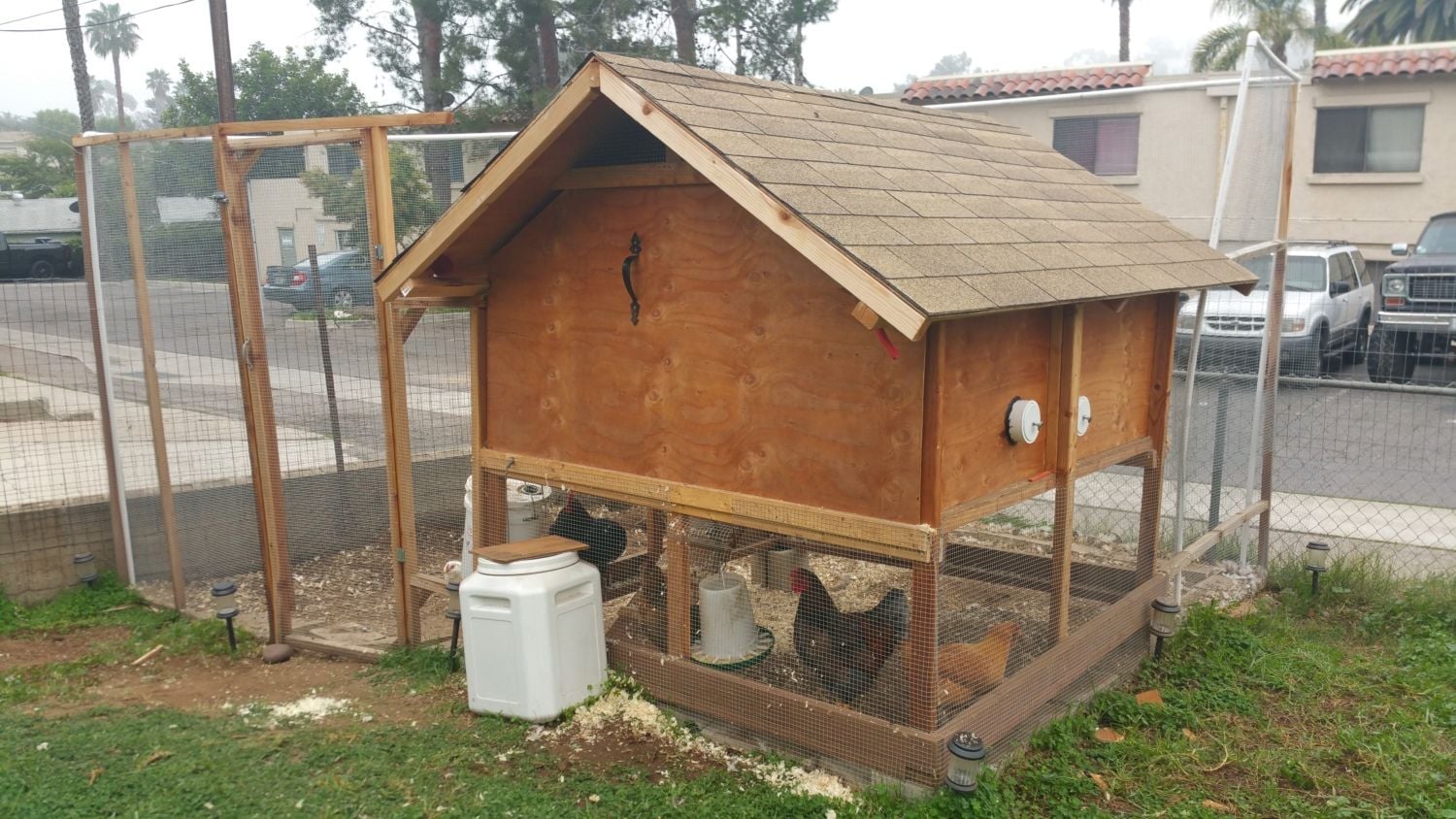 I managed to get them installed in just a bit over an hour (not including the trip to Home Depot). Used a jigsaw to cut holes in the wall and the bottom of the boxes, screwed the box to the floor and then to the wall from the outside. Sealed/glued the edges of the pipe adapters, and attached the nobs to the caps. I also added a 2x3 strip to the bottom front across the boxes for a threshhold. Popped in a fake egg and my fingers are crossed they start laying in there. =)