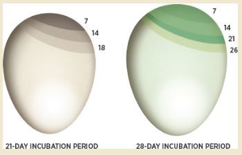 I'm trying to figure out what to do with my duck eggs. I've had 2 failed batches of duck eggs, the last batch were peeping a few days ago and didn't pip, didn't hatch. So incredibly heartbreaking and sad, especially after listening to them peeping. I think i had my humidity way too high (around 65%) and in hindsight, when i candled right before lockdown, and saw the beaks in the air sac, the air sacs were way smaller than they should have been. I've been staggering batches of eggs in a hovabator with turner and fan, then moving to a still air hovabator for lockdown. I just started 13 duck eggs and 14 chicken eggs the other day and have 14 duck eggs that are on day 15 now. I'm in troubleshooting mode because i don't want to lose any more ducks. Right now i have the humidity at 45% in the incubator. The eggs that have been setting at 65% for 2 weeks i candled today, and traced the air cell. According to this diagram the air sac in all 14 duck eggs looks a lot more like the day 7 reading, so it's about half the size it should be.