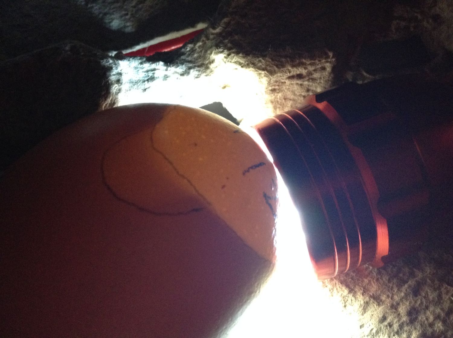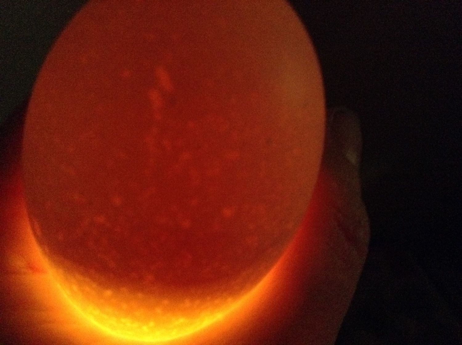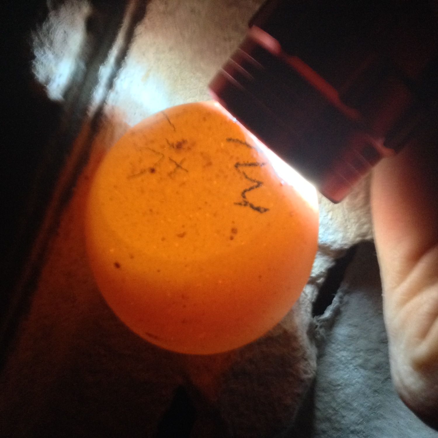 these are different views of the two chicken eggs that looked different. top one looks bloodier now, and the bottom one the air cell looks like it has fluid leaked into it? it doesn't look hollow like the other eggs. nothing smells, i'm going to remove the one that's bloodier now, and leave the other one a while longer.