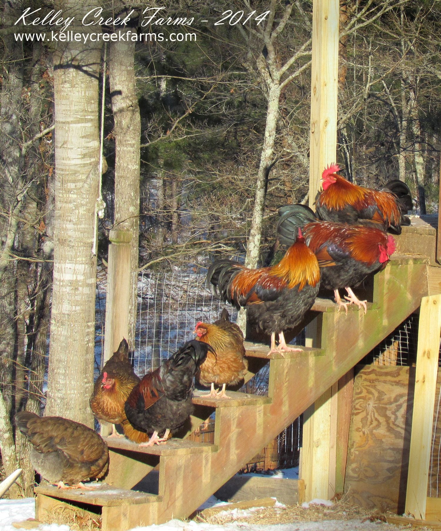 JKnox, you should probably cover the north SIDE of the pen with a tarp. Otherwise if they can roost and get out of the wind , they will be fine in our alabama winter's. Here's a pic of mine at 10 degrees last year. they puff up to stay warm and might have got some warm oatmeal. lol