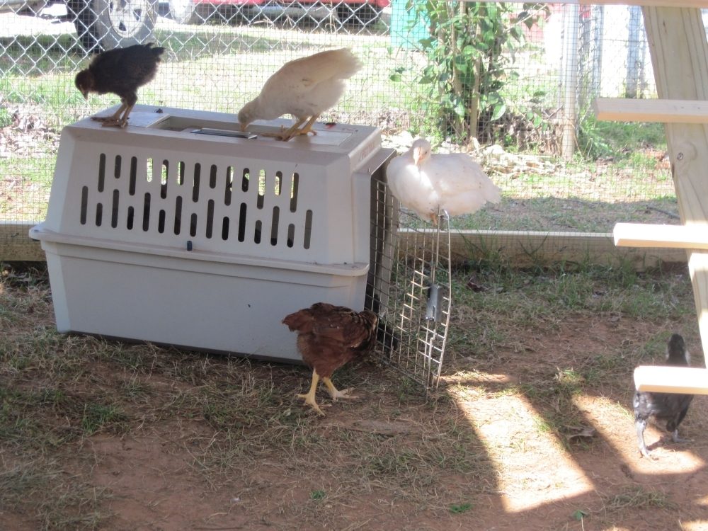 May add another step to their ladder, but we'll see. Could just put a cinderblock or something so they can keep their beak and nails down as well. Today they had no interest in it whatsoever, but it is only the second time outside so they were too busy checking out the grass.