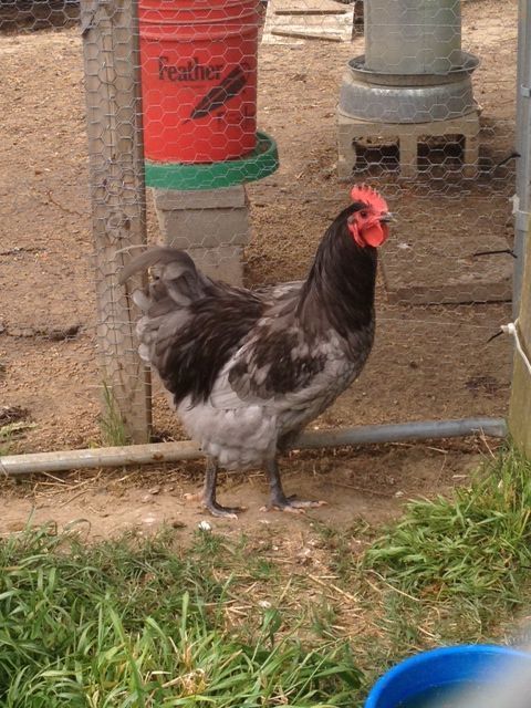 You'd think with Speck being just over a year old he would have shown what he was by now. Nope. I just noticed it today. With AGF the hens are all dull color (or neutral color since no healthy bird is actually dull) and the roosters sport bright, mostly metallic colors since they are bred to be showy. I think the horrible (and really hard to get rid of) case of leg mites he had kept him from growing properly. Of course, I've never heard of that happening, but I suppose it's possible. It could also be because of the Bumblefoot side of his breeding. I had never heard of it until he was given to me. Finding a site that displays them is still impossible, but an image search comes up with plenty of pics of them. (referred to as Bumblefoot Greys)
