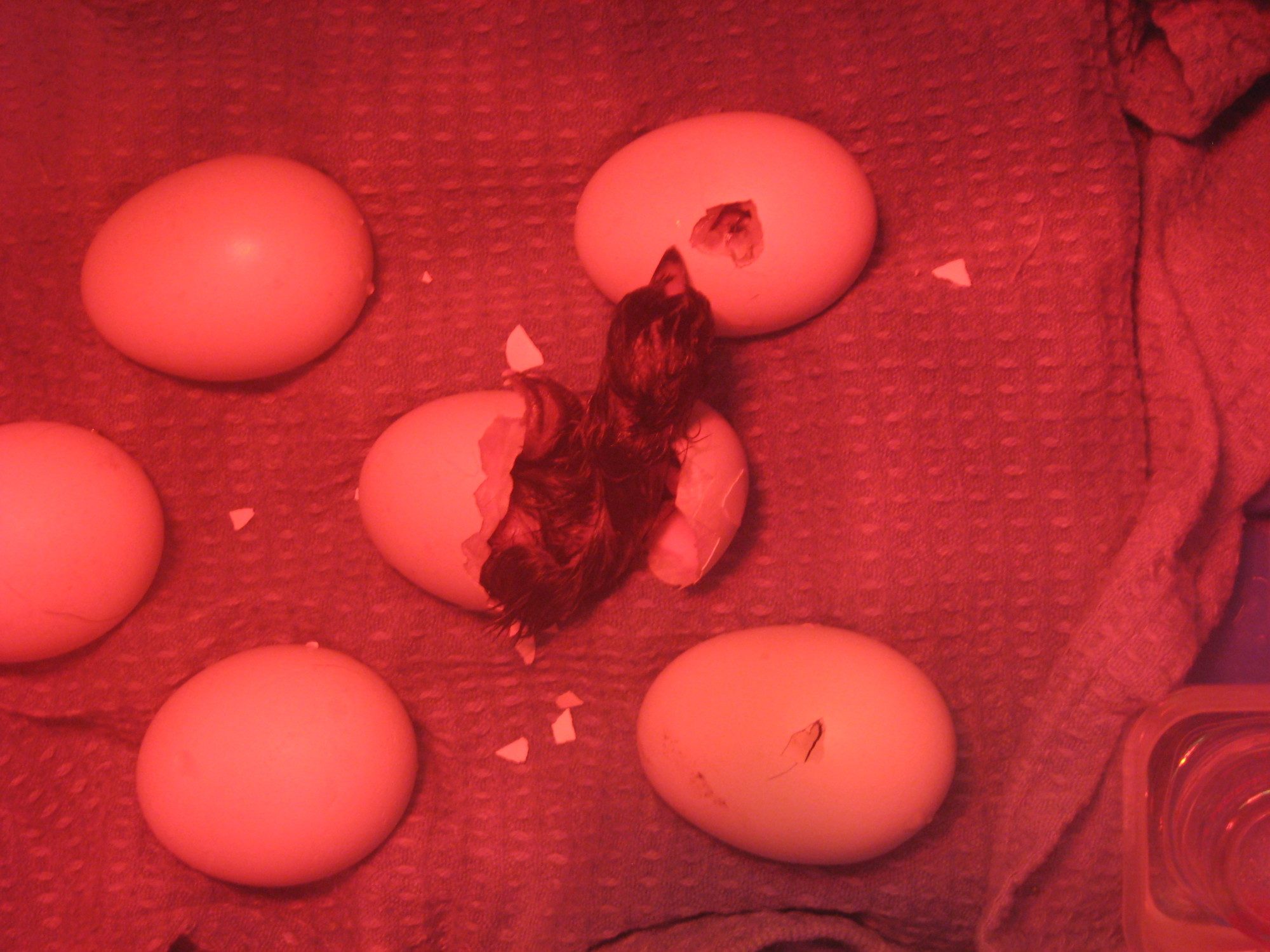 Yes we do! The first egg that had a little crack yesterday decided to pip and zip in like 15 minutes time. Loud little thing![]()