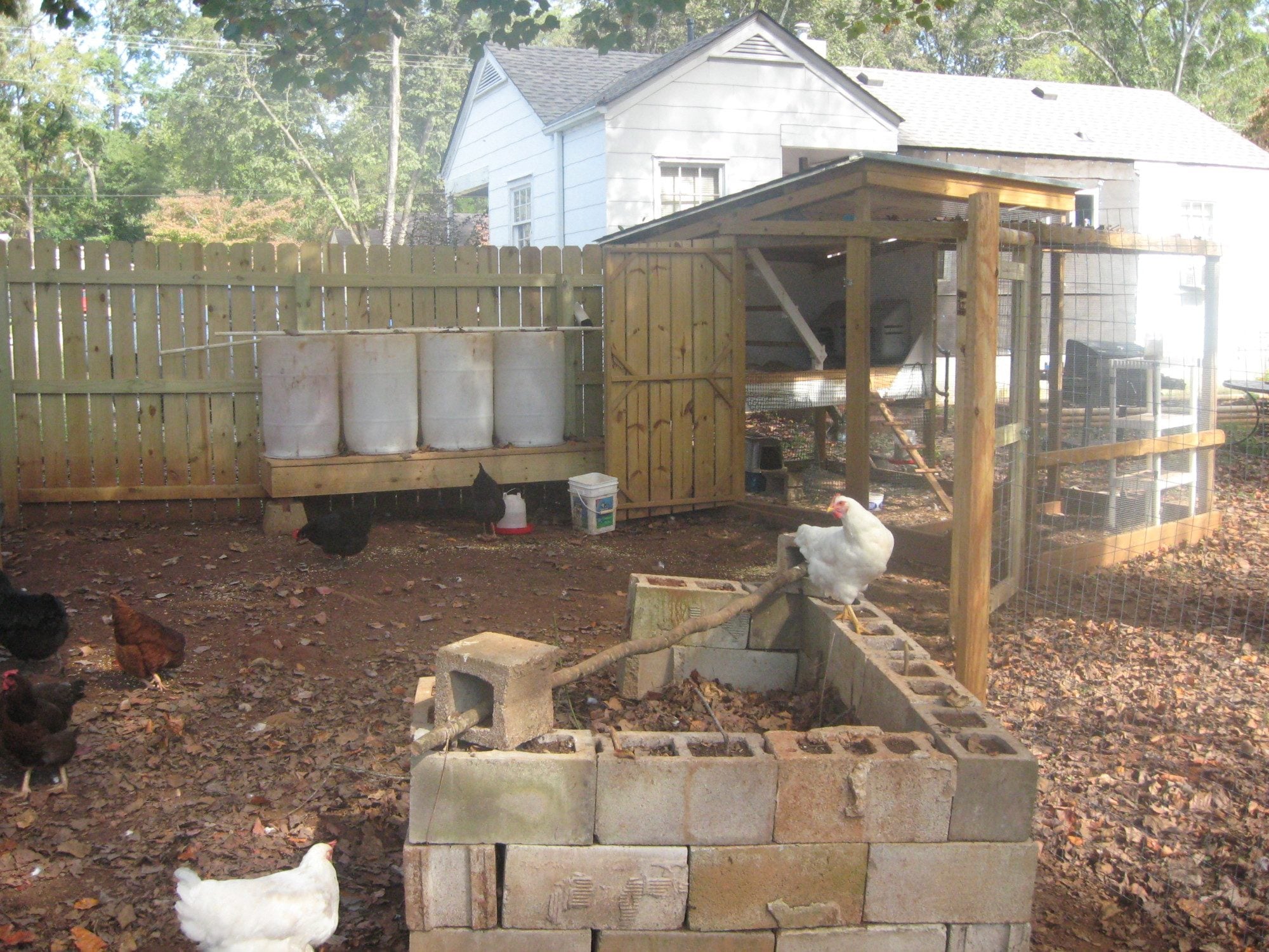I have a terrible time trying to explain our setup. Pictures to the rescue! Don't be fooled by the new and white look, that was pre-chickens. Everything is a lot dirtier looking now