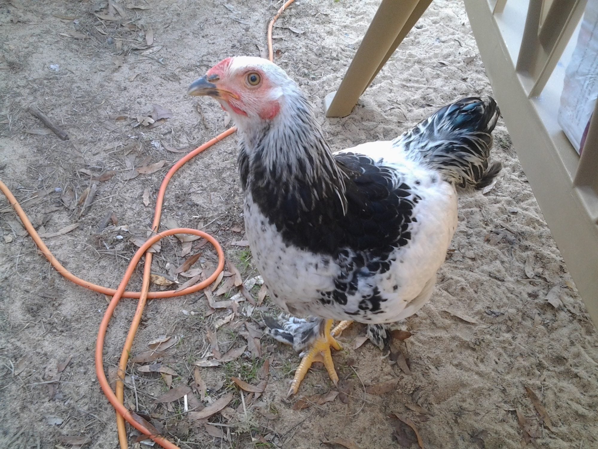12 week old little brahma roo. Hes trying so hard to crow. He tilts his head back, opens wide, and lets out a weired little screech