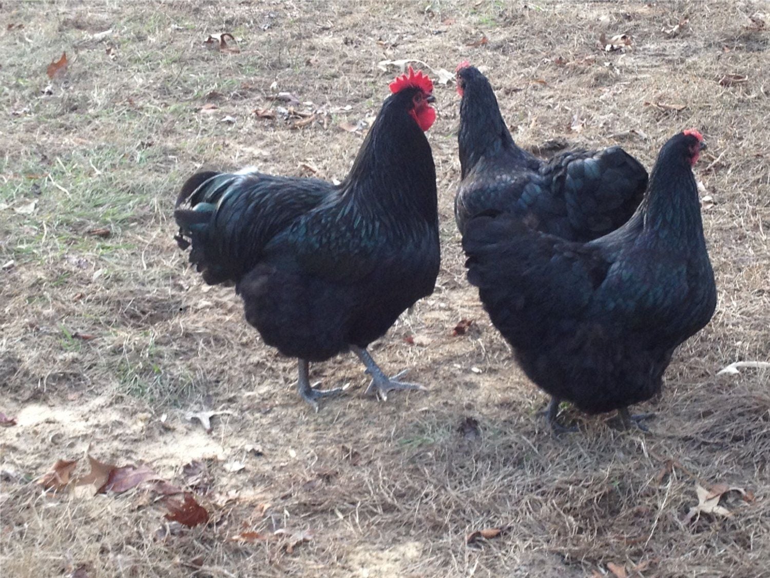 It's the strangest thing. This pic is right-side- up when I view it on my computer, but when I upload it, it is up-side-down. ANYWAY, if someone could flip it and repost it I would appreciate it . These are my breeding trio of Black Orpingtons. I have about a dozen chicks to sell ranging in age from 10 weeks to hatching this weekend. The only thing about the pic is that it doesn't show just how big they are. Everyone that sees that roo says, "Whoa! That's a big rooster!"