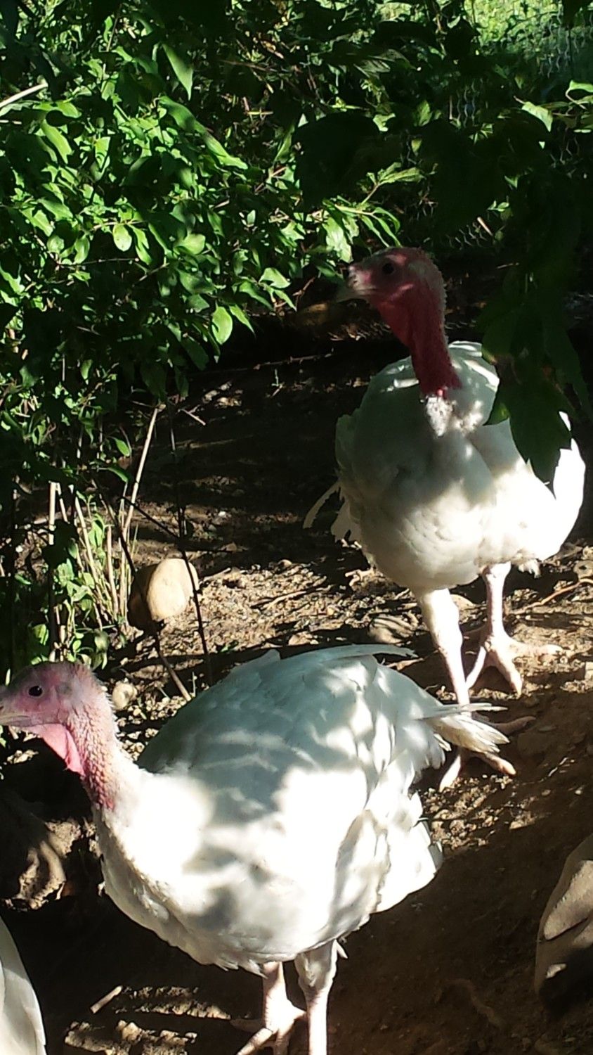 My poults are 11 weeks old and by this time my toms are usually gobbling and strutting. This year all three birds are just chirping. Their snoods are short. I'd say they are all hens, except their necks turn bright red when I call them.