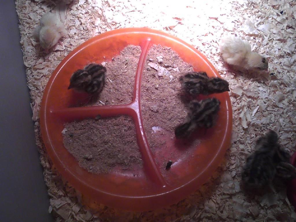 It's been 18 days and the first brown coturnix hatched. A couple other eggs are moving. I had to move out of the rental house today and moved them across town. Some eggs may be upside down now. Oh well. One started to chip out, but he's paused.