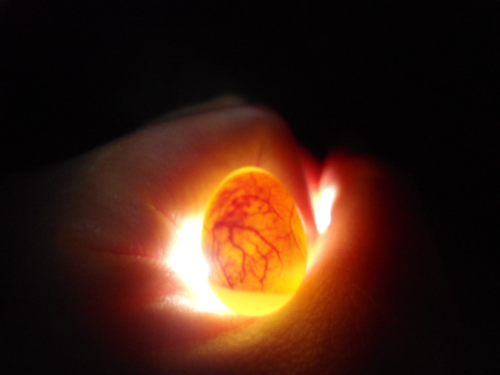 Hi, this is my first time incubating an egg- I found what I think to be a finch egg in my yard after a pretty bad storm a little over a week ago, and have since been taking care of it. From what I've seen from youtube videos of candling it seemed to be developing just fine, until today when I realized I couldn't see the embryo at all anymore.