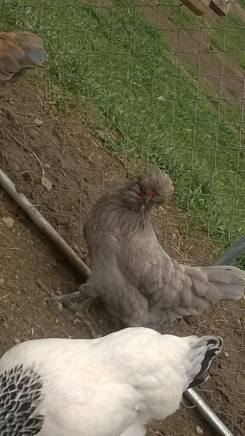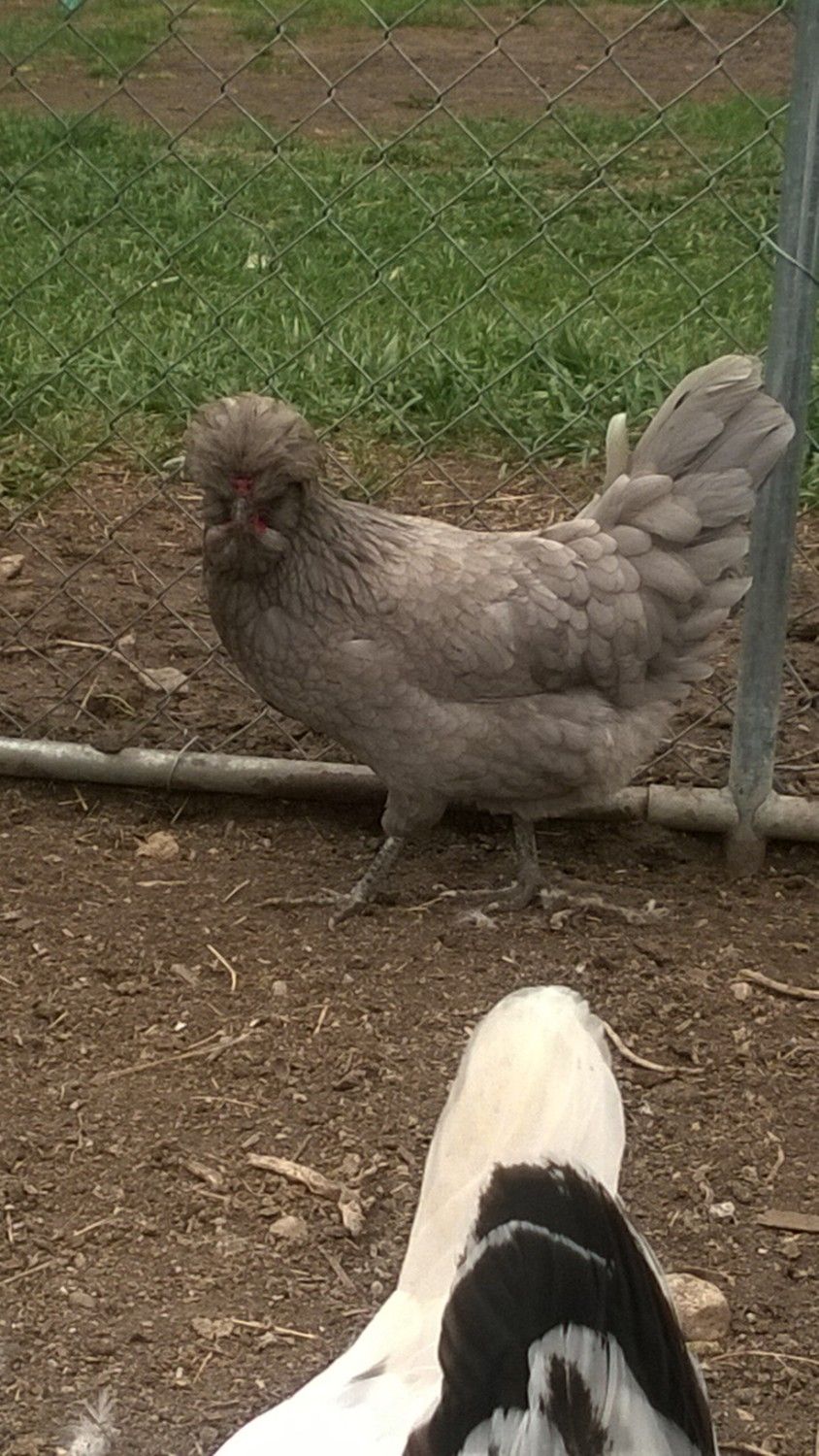Easter egger, Naked Neck, Mottled Houdan and who knows what else were in this cross. I had a broody hen and just wanted something for her to set; The flock mates were all very ugly with modified combs and partial crests but somehow she was created and lays a nice cream colored egg almost everyday.