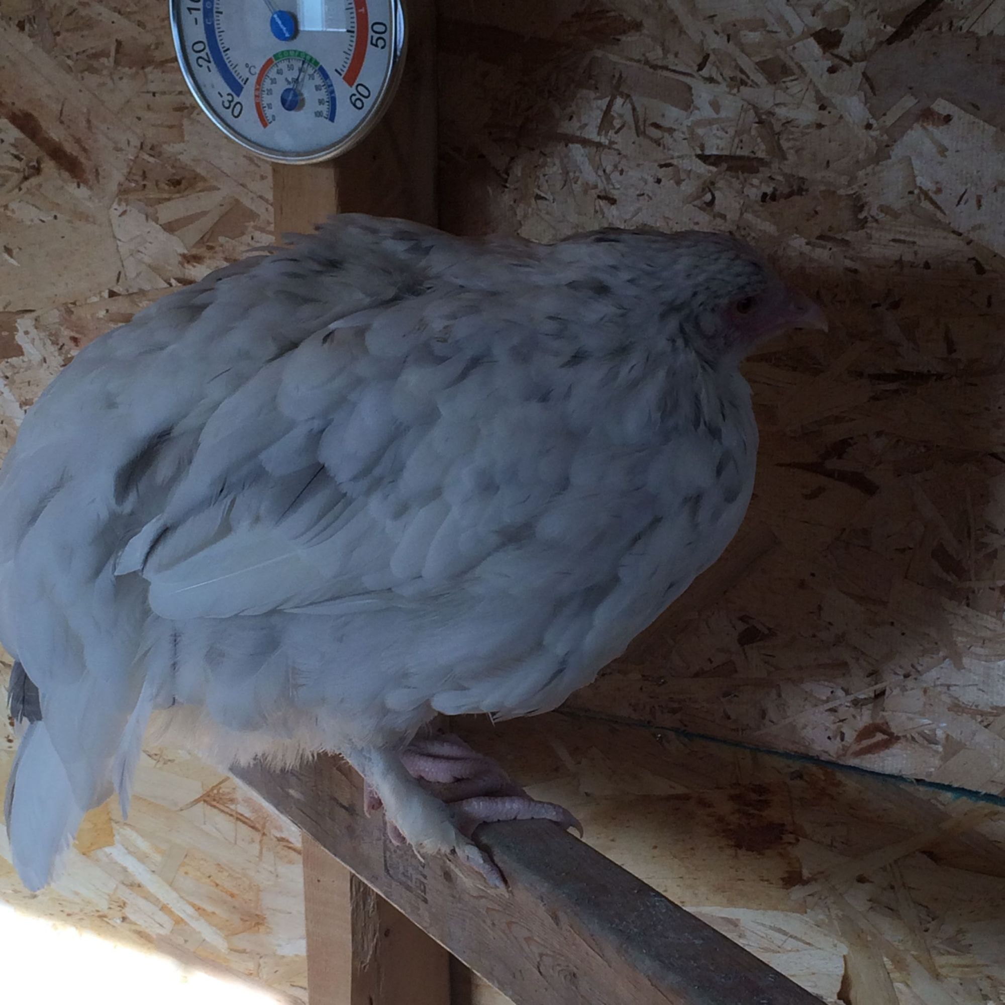 I'd put her at a splash Marans, I'm not sure she's mixed. She's got that pretty pure white shanks and skin, straight comb, no beard or muffs that I can see. I wouldn't be surprised if you get a nice dark brown egg from her. She's quite a looker, too