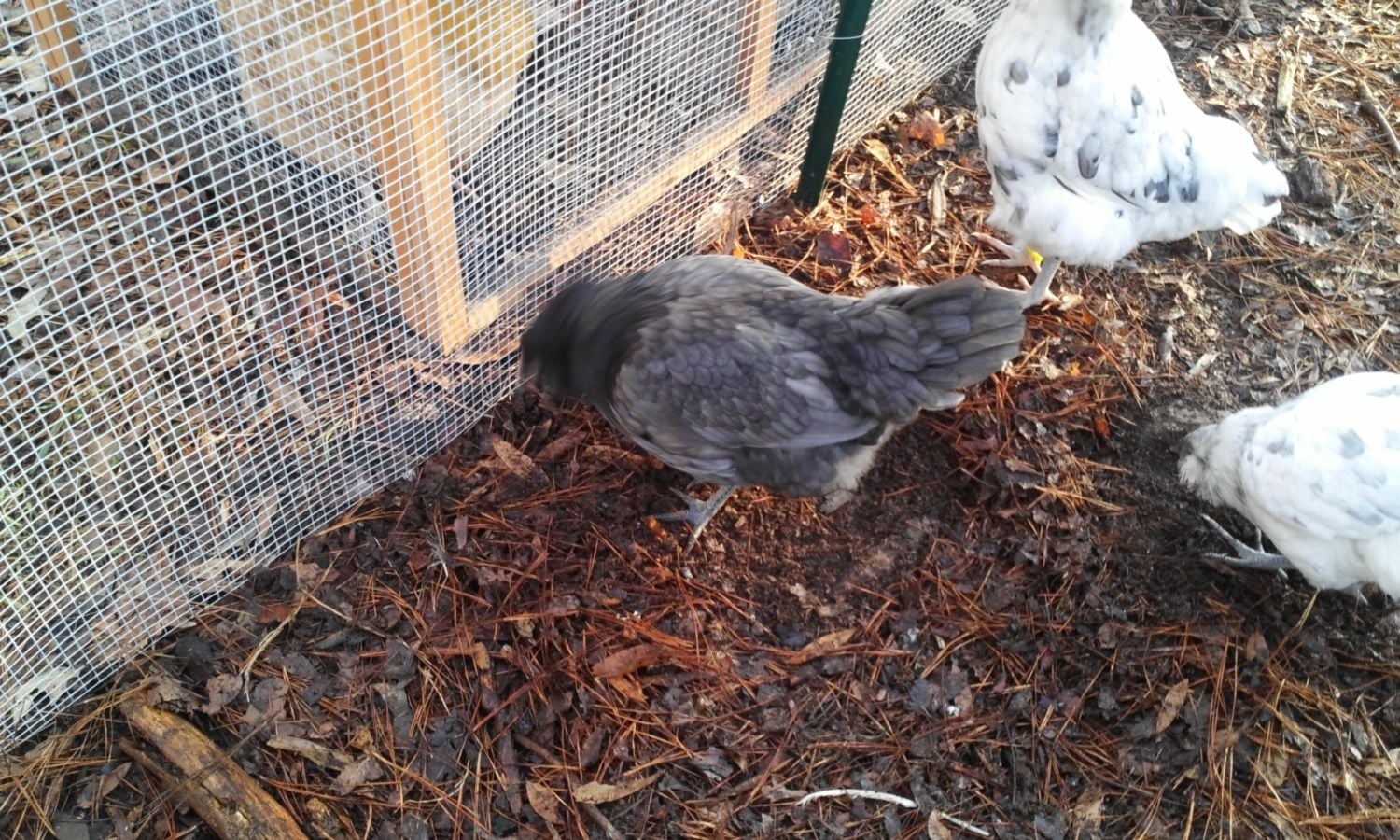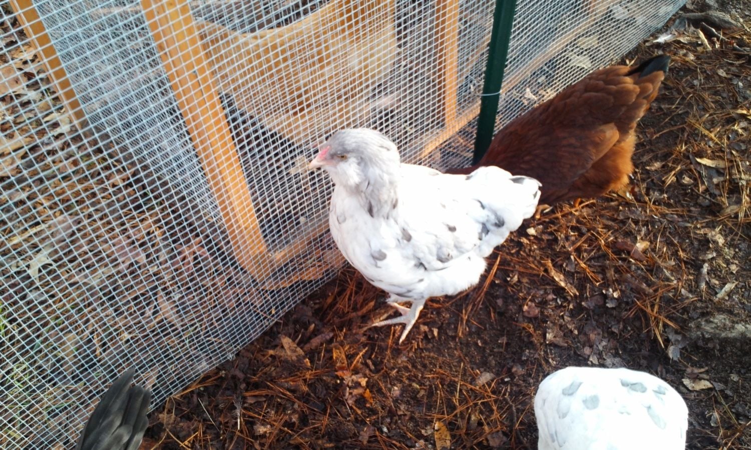 Here is another mystery sex Ameraucana (apparently my cell phone can't process white birds well):