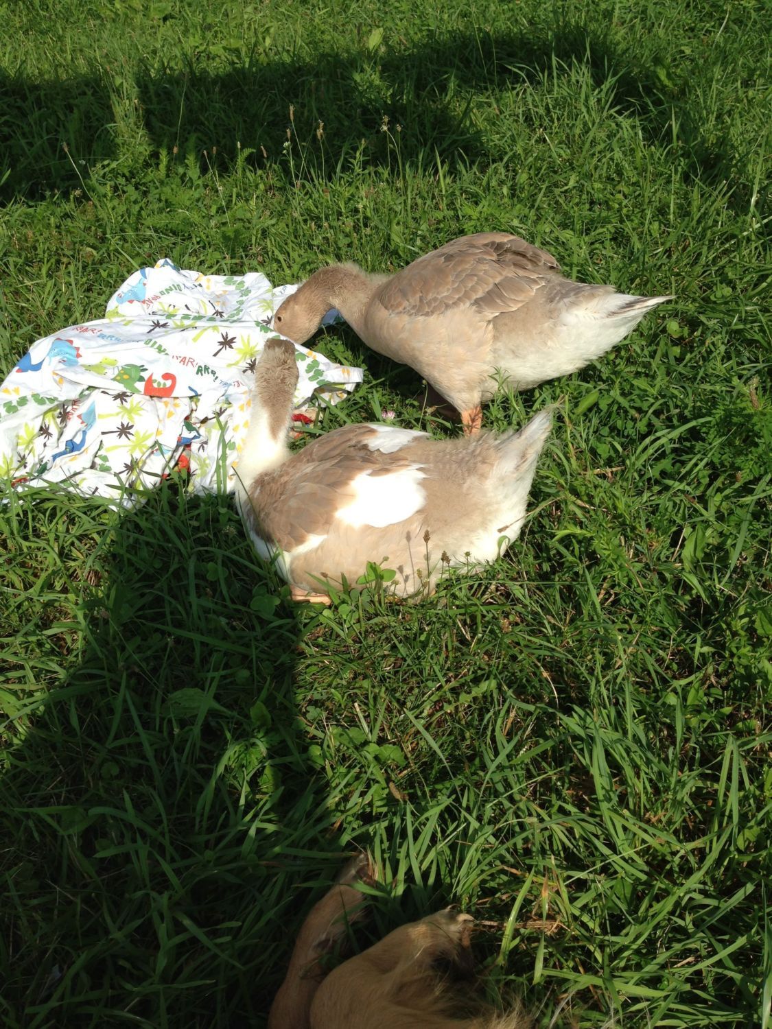 In the back is Martha between the Embden and a Toulouse. She is definitely shorter than them even though they are several weeks younger.