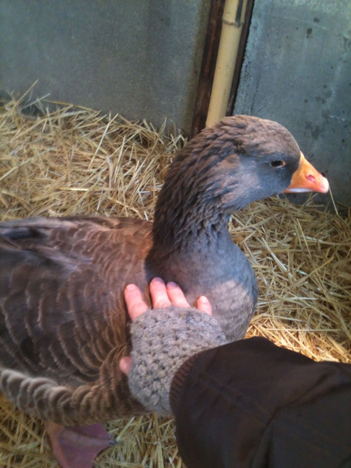 X2 what flockman said, practically the only place to get blue & lavender American geese is from Dave Holderread. Also it might be helpful to chekc out the toulouse thread and look at their pictures of production toulouse to compare with yours. Toulouse and Blue American can be very similar in color. When Rae, (in picture) was growing up I thought he(she?) was an extra dewlap because they were so similar as goslings (slightly smaller, but no other difference) Then when no dewlap or keel showed up I realized I had an American. It's still hard sometimes to tell them apart when they're napping head-tucked on the lawn.