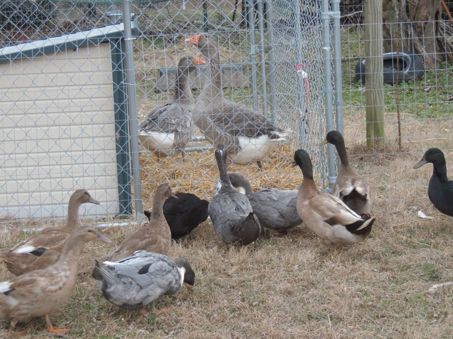 how many of you run your geese with your ducks? can they be house together ? mine want to be with the ducks so bad. also I need a pool for them , one of my pools broke. thanks judy.