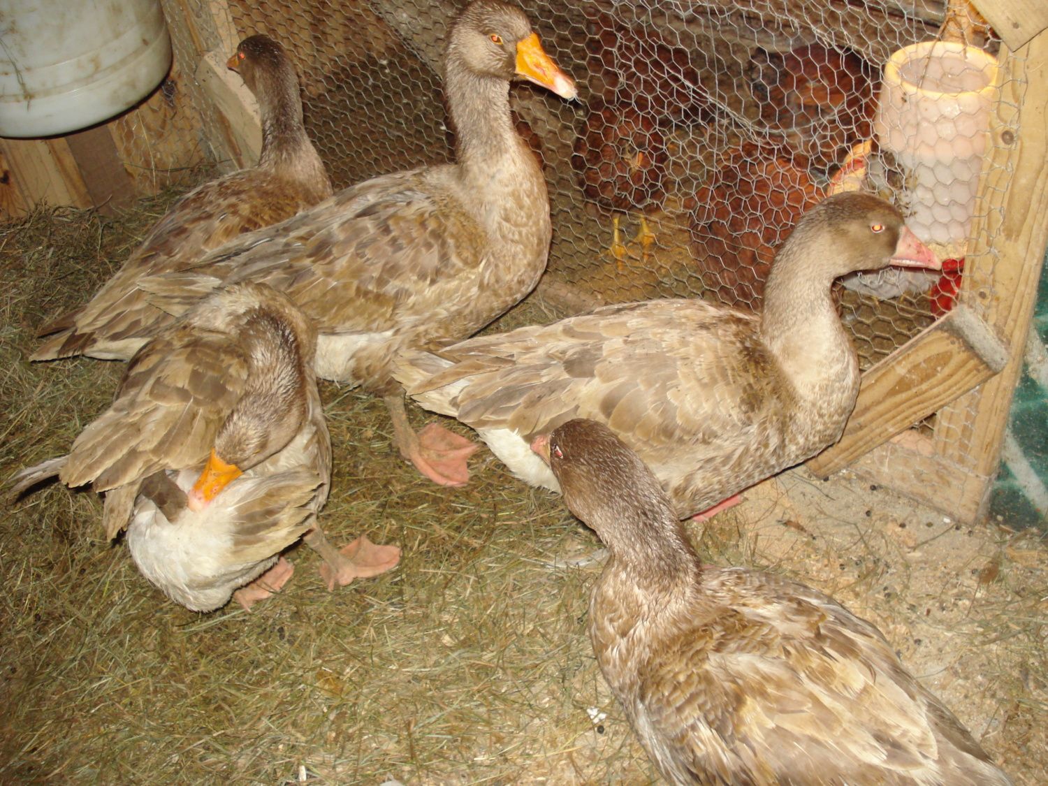 Okay, I started reading this thread because I recently came upon a Craig's list add from a local breed who was getting rid of his breeding flock of American Buffs. I purchased from him two males and three females he told me the he got the trio one place and the other two from quite a ways away. So I bought all 5. Well, after getting them home a noticed the pair had pink bills and feet while the other three had bright orange bills and feet. I didn't really think anything of it because I had read on the livestock conservancy site that there bills and feet can turn pink if the aren't getting enough grass. But, after reading this thread I think I may have a pair of Brecon buffs and a trio of American Buffs for $140. Could someone tell me if my suspicions are correct or not?